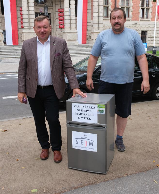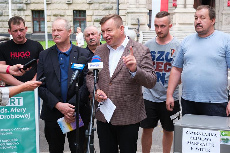 Na swoją konferencję poseł i towarzyszący mu rolnicy przynieśli gadżet, skrzynkę z napisem "Zamrażarka sejmowa marszałek Witek". W ten sposób chcieli zwrócić uwagę na to, że nie jest procedowana ustawa PSL wprowadzająca system kaucyjny, który zdaniem ludowców zniwelowałby problemy wynikające z przedostawania się tańszego ukraińskiego zboża do Polski.
