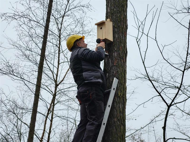 Ponad 40 budek lęgowych dla małych ptaków przekazali Lasom Miejskim uczniowie I Prywatnego Liceum Ogólnokształcącego Leonarda Piwoni. Pierwsze z nich już zostały zamontowane na drzewach.