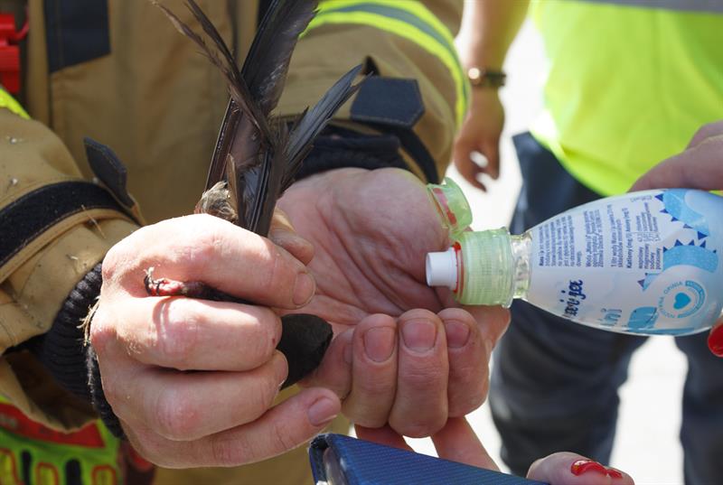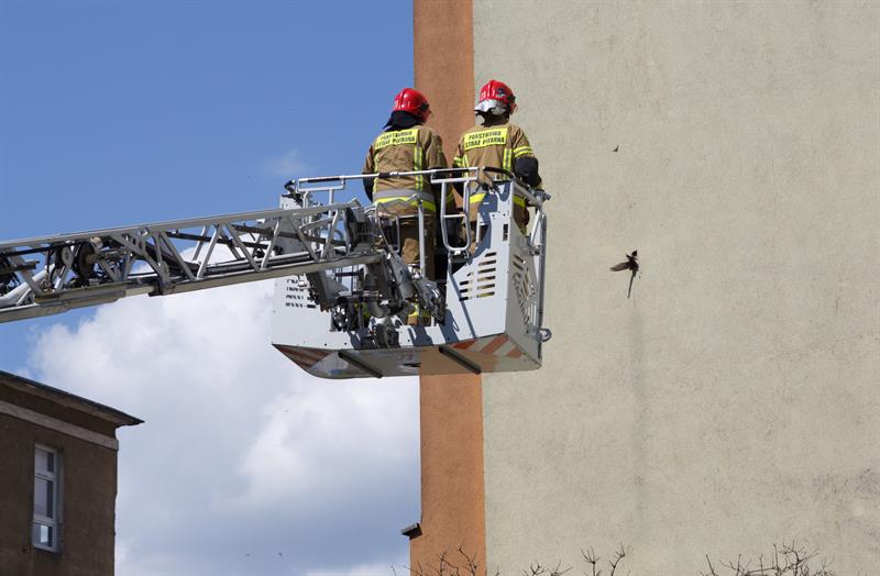 Do ratowania skrzydlatej ofiary potrzebny był wóz z mechaniczną drabiną. Sprawne ręce strażaków wyplątały młodziaka z siatki. Już na dole, po akcji, jerzyka napojono wodą. Po chwili słuchać było trzepot skrzydeł uratowanego ptaszka, który o własnych siłach pofrunął tylko w sobie znanym kierunku.