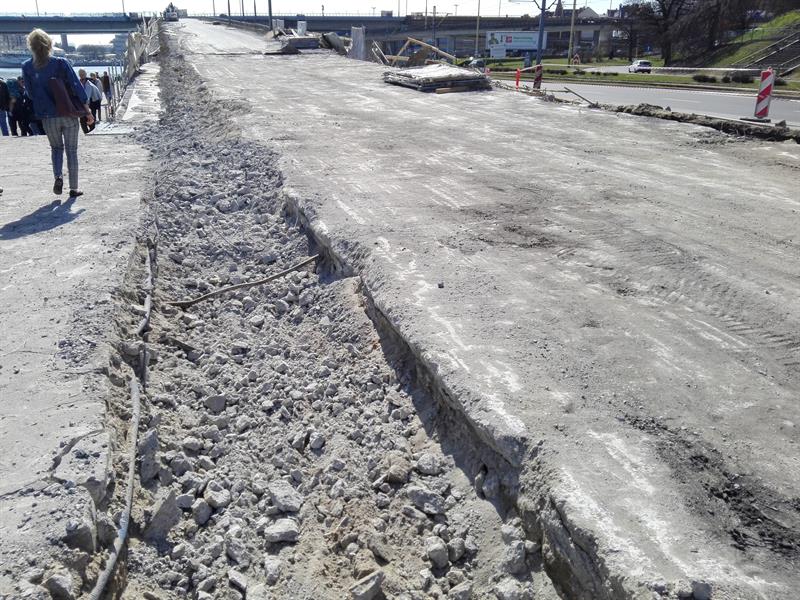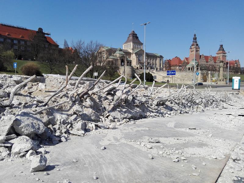 W jednym miejscu zalegają hałdy betonu, który spadł z wysokości. W drugim - z malowniczym widokiem na Wały Chrobrego - straszą odsłonięte przerdzewiałe pręty. Na finał - czyli przy zejściu z nadodrzańskiego bulwaru na chodnik ul. Jana z Kolna - jest głęboki na metr dół: swoisty basen gruzu.