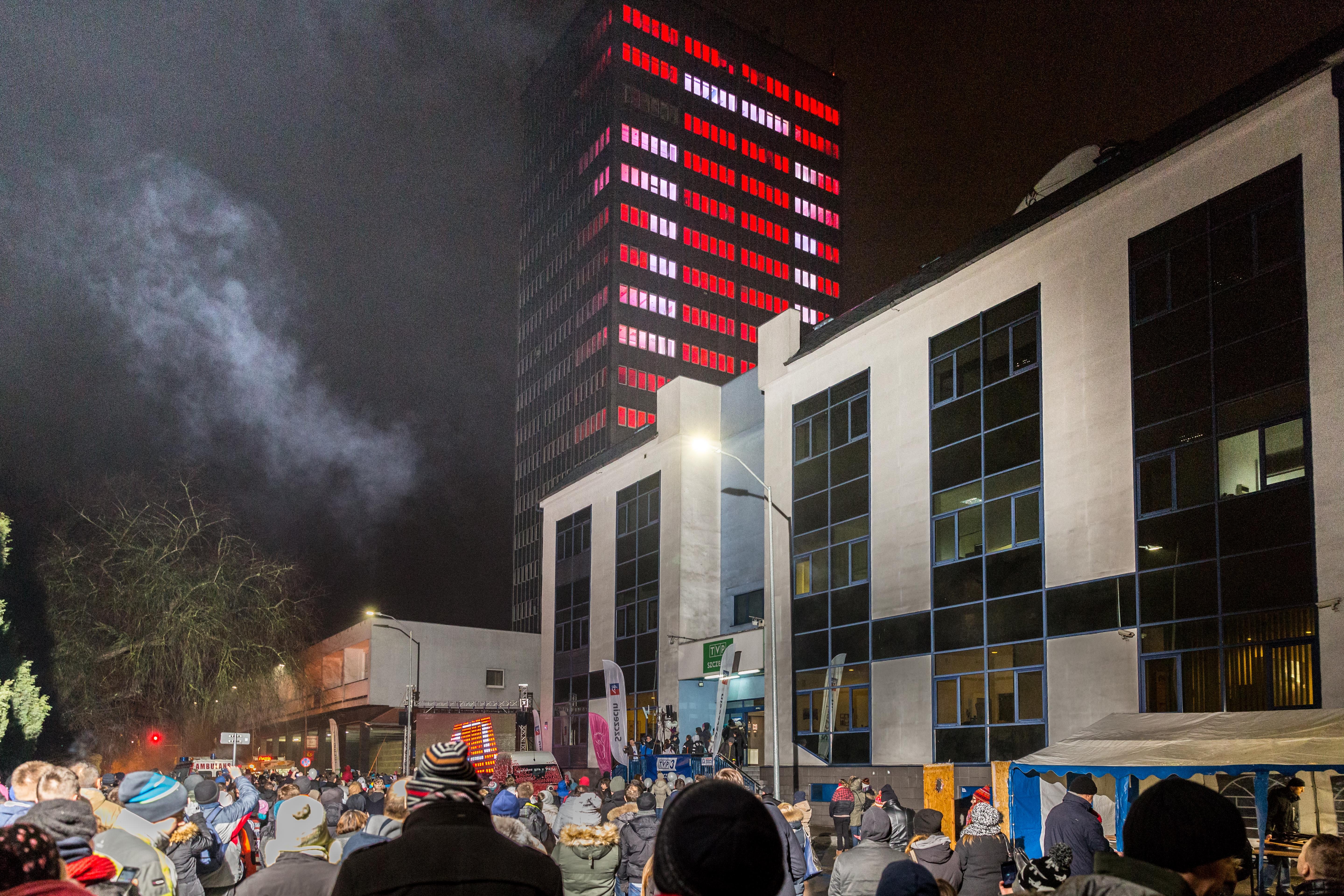 Dwudziesty czwarty finał Wielkiej Orkiestry Świątecznej Pomocy w naszym mieście spuentowało "światełko do nieba" na wieżowcu TVP Szczecin.