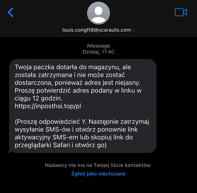 - Przestępcy podszywają się pod firmy kurierskie, wysyłając fałszywe wiadomości. Na przykład o rzekomym zatrzymaniu przesyłki z powodu „niejasnego adresu”. Wiadomość nakazuje kliknięcie w załączony link, w ciągu 12 godzin, pod pretekstem potwierdzenia danych. To klasyczny atak typu „smishing” - ostrzega oficer prasowy KMP w Szczecinie. - Po kliknięciu linku, ofiary są przekierowywane na fałszywą stronę, łudząco przypominającą serwis InPostu. Tam oszuści kradną dane logowania, numery kart płatniczych lub instalują złośliwe oprogramowanie. Szczególnie niepokojące są instrukcje w wiadomości: „Proszę odpowiedz Y” lub „otwórz link w Safari”. Bo jest to próba ominięcia zabezpieczeń przeglądarek. Pamiętajcie: prawdziwy InPost NIGDY nie używa domen typu „inposthsi.top” ani nie wysyła komunikatów z losowych adresów e-mail.