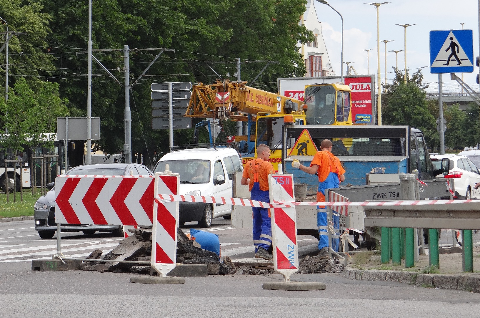 W miniony weekend za sprawą rozgrywanych zawodów triathlonowych, których trasa wiodła także przez te dziury i koleiny, pojawiła się nadzieja, że rychło w tym miejscu nawierzchnia jezdni doczeka się naprawy. Nie tylko zresztą ta studzienka z zapadliskiem, ale także pas przejścia dla pieszych, gdzie w wyjeżdżonej asfaltowej kołysce po każdym deszczu powstaje na jego szerokości spore rozlewisko. Zabezpieczenia tego miejsca, czyli solidne wygrodzenie wraz z dechą, którą służby komunalne przykryły owo zapadlisko na wjeździe prawoskrętem tuż za mostem Długim w ul. Jana z Kolna, nie były tym razem - jak czasem to bywa w realiach Szczecina - zapowiedzią kolejnych długich tygodni w oczekiwaniu na pojawienie się robotników właściwych służb komunalnych. ©℗