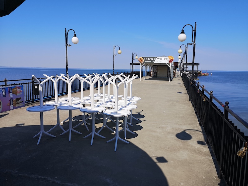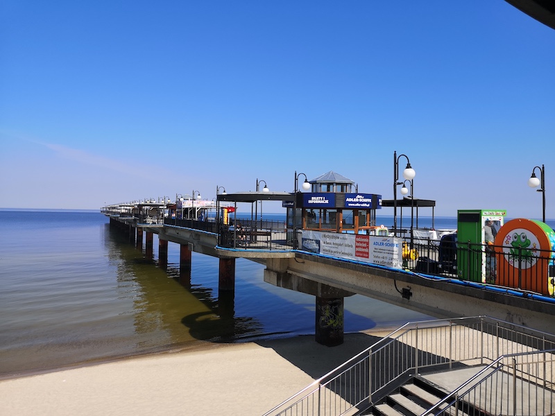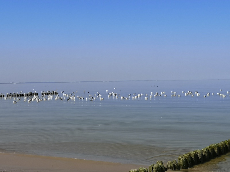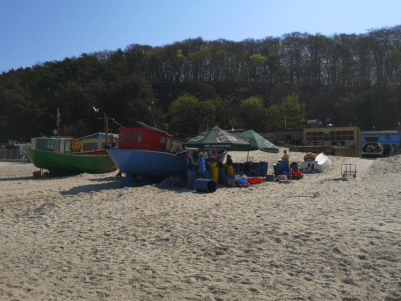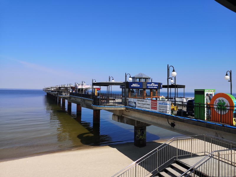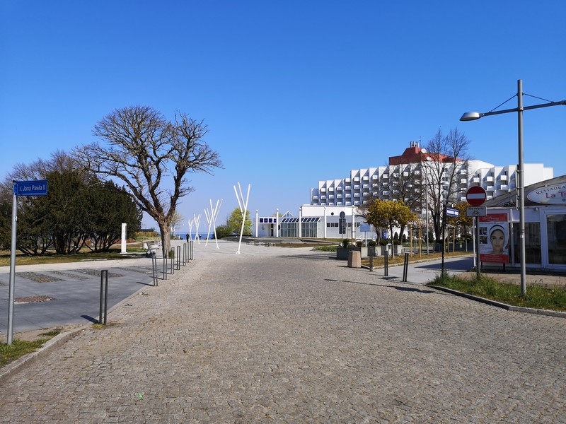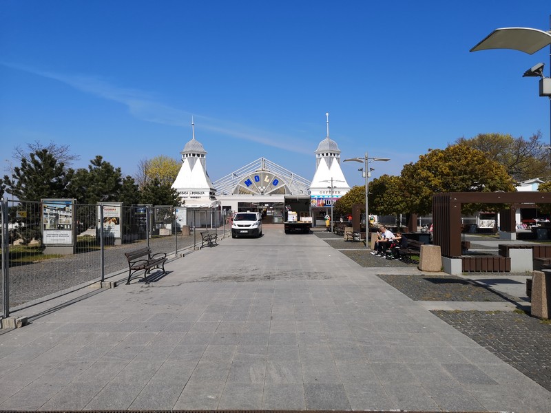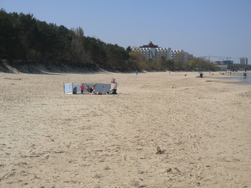 W piątek było pięknie i słonecznie. Wiatru nie było, morze było spokojne i pojawiło się trochę spacerowiczów, ale nie zabrakło także chętnych do opalania i nawet morskiej kąpieli tuż koło mola, na którym ludzi można było na rękach policzyć. Lokale gastronomiczne na molo są pozamykane, jedynie lodziarnie i ciastkarnie sprzedają „na wynos”.
