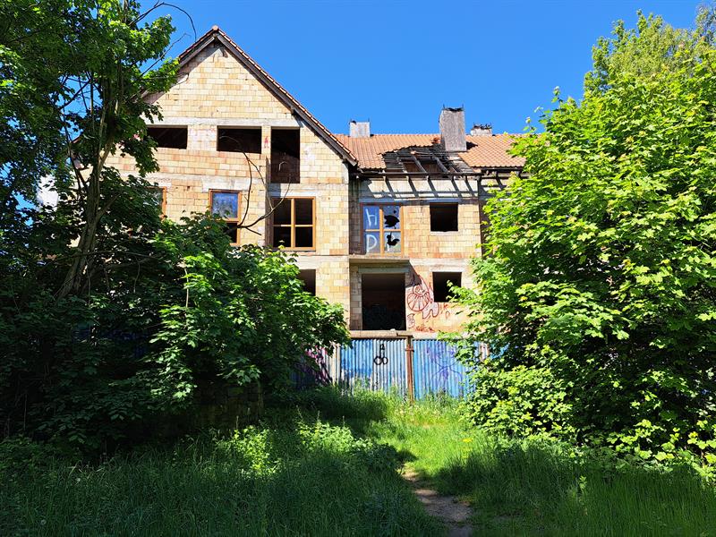 Na tablicy informacyjnej umieszczonej na ogrodzeniu posesji czytamy, że formalnie budowę wznowiono już w lutym 2025 roku. Faktycznie, przy głównej elewacji ustawiono rusztowania, rozebrano też część nadpalonego dachu. Na placu budowy jest jednak cisza. Próbowaliśmy skontaktować się z kierownikiem budowy, bez skutku. W urzędzie miasta nieoficjalnie dowiedzieliśmy się, że wieloletnie wstrzymanie budowy było związane z problemami prawnymi.