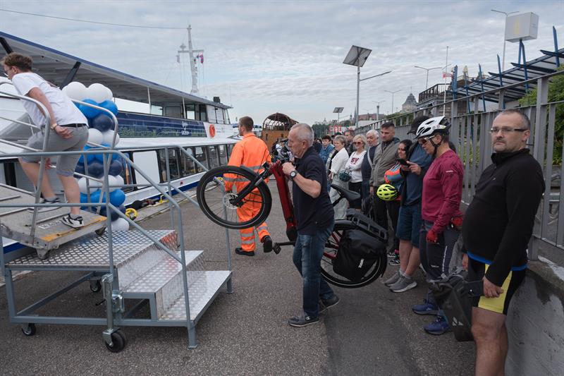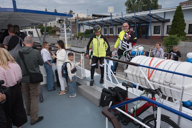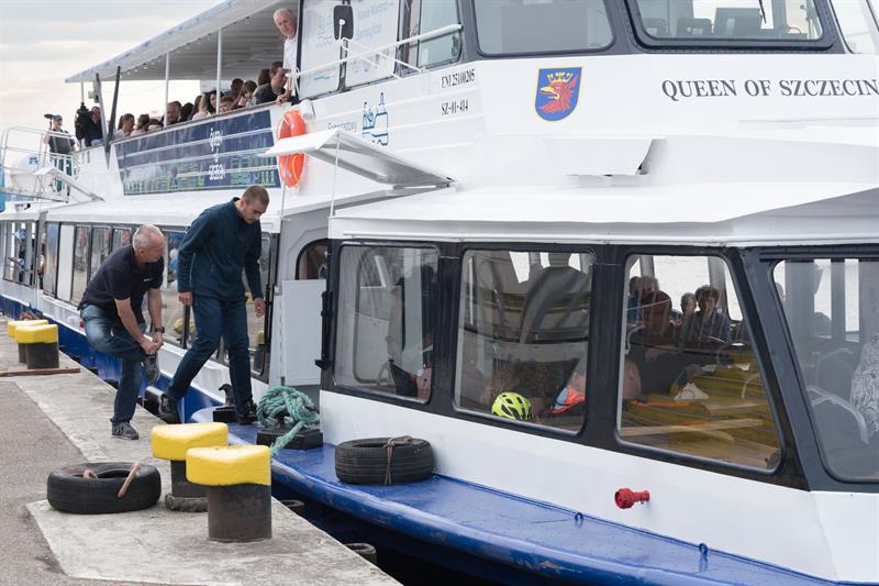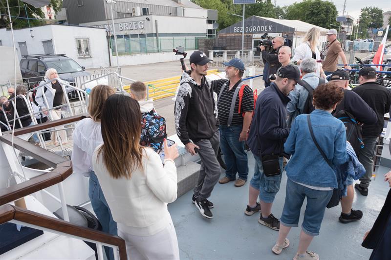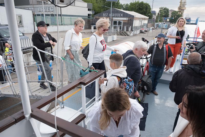 Na pokładzie jednostki znalazło się kilkadziesiąt osób, w tym wielu pasażerów z rowerami – nowa linia cieszy się dużym zainteresowaniem zarówno wśród turystów, jak i mieszkańców regionu. Uroczystego przecięcia symbolicznej wstęgi dokonali starosta policki Shivan Fate oraz kapitan statku Janusz Just, dając tym samym sygnał do rozpoczęcia sezonu rejsowego.