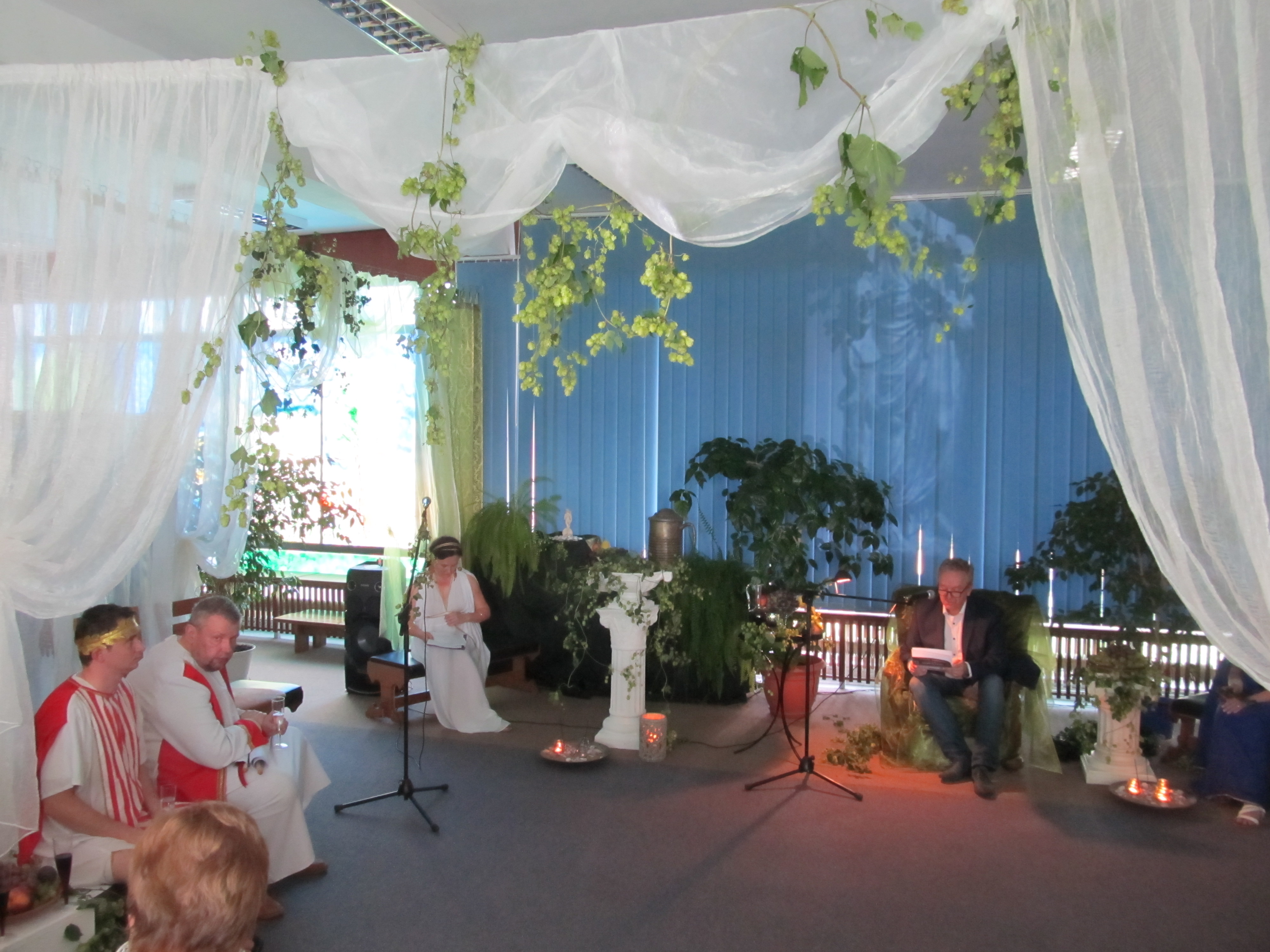 Wnętrze obiektu, upiększone m.in. bujną roślinnością, lampionami, wypełnionymi morskim piaskiem i owocami misami oraz dzbanami soku, nawiązywało do akcji powieści H. Sienkiewicza „Quo vadis”. Zmiany wyglądu działu dziecięco-młodzieżowego Książnicy Stargardzkiej dokonano bowiem z okazji V edycji Narodowego Czytania Arcydzieł Literatury Polskiej. Dlatego też zaproszeni specjalnie na tę okazję goście (na zdjęciu: dyrektor LO nr 2 w Stargardzie Andrzej Kałuża) zasiedli na tronowym fotelu i prezentowali słuchaczom wybrane fragmenty powieści H. Sienkiewicza. Miłośnicy ekranizacji „Quo vadis” oglądali zaś amerykańską i polską wersję tego filmu w sali projekcyjnej.