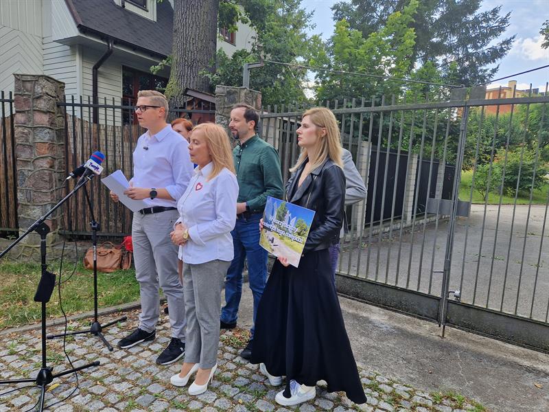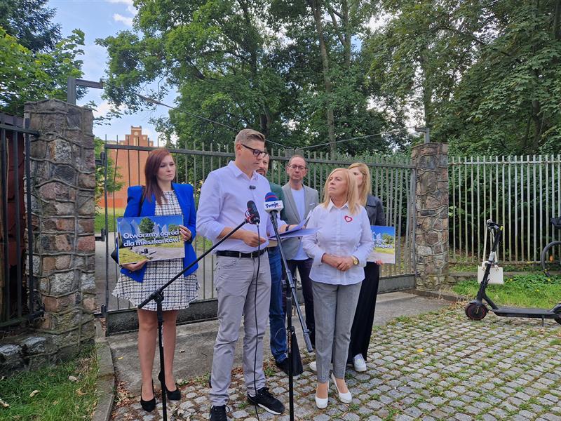 W sobotę przed południem, przed bramą prowadzącą do skweru zebrali się radni KO, Zielonych i radne osiedli, aby wyrazić swój sprzeciw wobec decyzji, która - ich zdaniem - uderza w dobro wspólne oraz komfort życia mieszkańców miasta.
