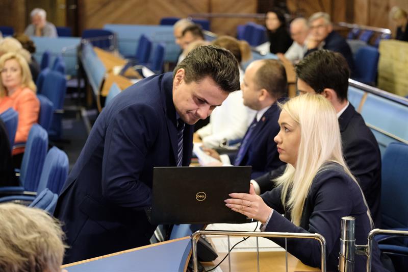 Jednym z pierwszych punktów programu sesji był projekt uchwały dotyczący przyjęcia „apelu radnych do kandydatów i kandydatek w wyborach do Sejmu i Senatu o uwzględnienie w programach wyborczych swoich ugrupowań postulatów określonych w «Deklaracji szczecińskiej 2019-23». Chodzi o dokument, który kilka dni temu zaprezentował prezydent Szczecina Piotr Krzystek. W 12 punktach sformułował on najważniejsze sprawy dla miasta, jakie powinni wspierać przyszli parlamentarzyści. Wśród nich jest m.in.: umożliwienie przejęcia przez miasto bulwarów u stóp Wałów Chrobrego (są pod kontrolą Polskiej Żeglugi Morskiej), budowa obejścia zachodniego Szczecina wraz z przeprawą Police – Święta, dofinansowanie budowy dróg do Zakładów Chemicznych Police SA w związku z jego rozbudową, przejęcie przez rząd finansowania pracowników oświaty, stworzenie funduszu samorządowo-rządowego finansującego ograniczenie szkodliwej emisji do atmosfery. Deklarację przyjęła już współrządząca miastem Koalicja Obywatelska i Bezpartyjni – ugrupowanie prezydenta miasta. Jej zapisy kwestionuje PiS.