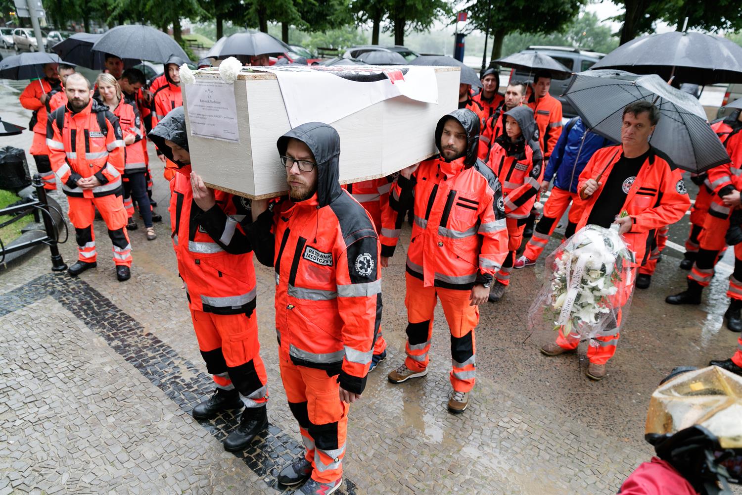 Na zdjęciu: Z symboliczną trumną ratownicy przemaszerowali przed siedzibę wojewody.