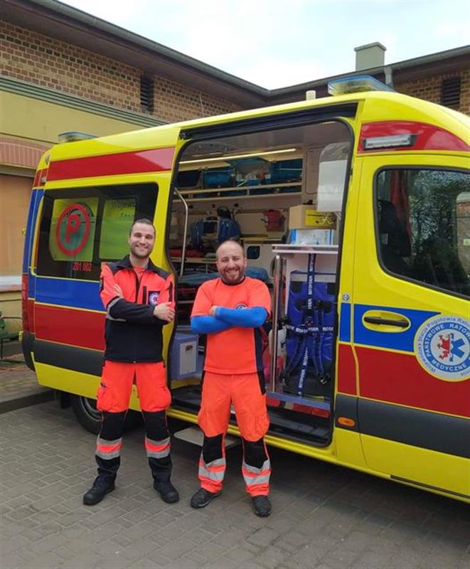 „Nasz szczeciński zespół Z01002 otrzymał dziś wezwanie do jednego z mieszkań na osiedlu Łękno do kobiety w zaawansowanej ciąży, u której rozpoczęła się akcja porodowa - poinformowała w czwartkowe popołudnie Wojewódzka Stacji Pogotowia Ratunkowego w Szczecinie. - Maleństwo tak śpieszyło się na świat, że nie było czasu na dojazd do szpitala. Ratownicy medyczni Jarosław Wardyn i Ernest Kowalski (obaj na zdjęciu) przyjęli poród w domu pacjentki i o godzinie 12.42 powitali na świecie małą Jagodę. Zdrowa dziewczynka wraz z dzielną mamą zostały zabezpieczone i przetransportowane do szpitala. Serdecznie gratulujemy i życzymy dużo zdrowia!”