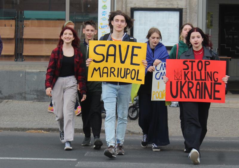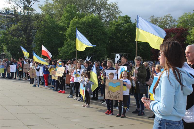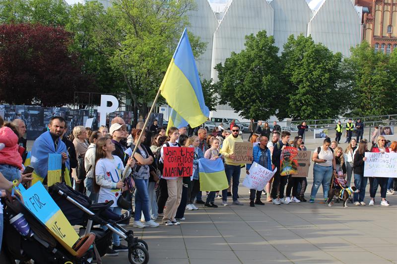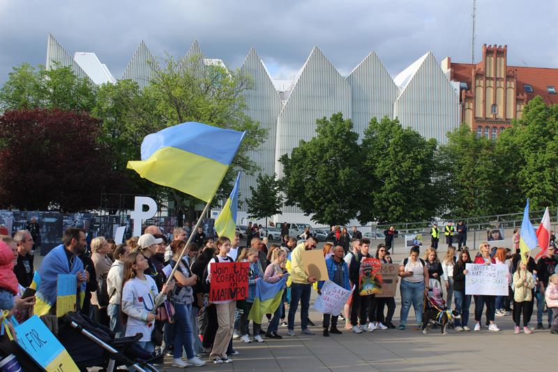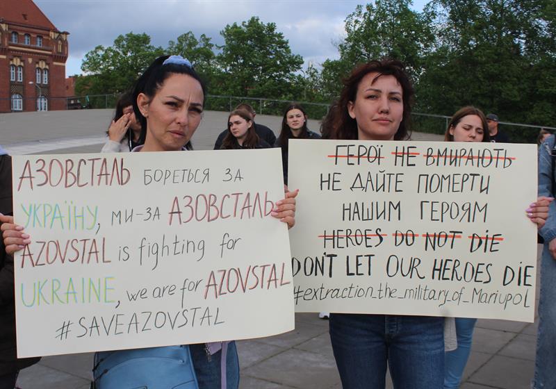 Ten wiec jest inny niż wszystkie poprzednie. Na pl. Solidarności w Szczecinie, obok pomnika Anioł Wolności i symbolu Polski Walczącej zgromadziło się kilkuset Ukraińców i Polaków. Apelowali do ONZ, Czerwonego Krzyża i przywódców światowych państw o pomoc, dla walczących obrońców Martiupola.