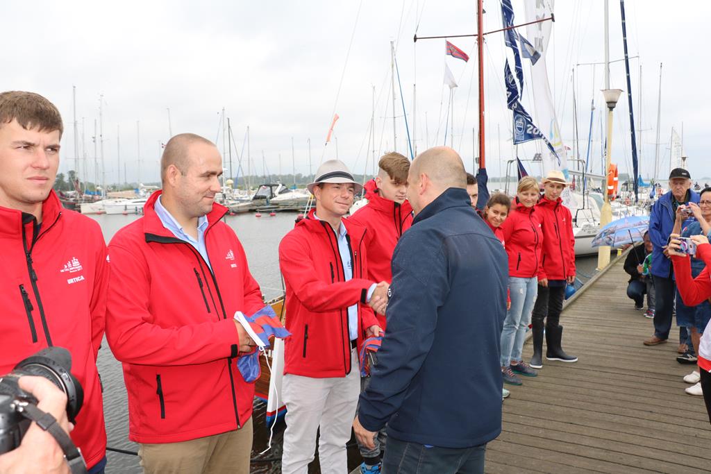 Po krótkim pożegnaniu Dyrektor CŻ Łukasz Pundyk wręczył kapitanom szczecińskie banderki, a załoganci pożegnali się z rodzinami.