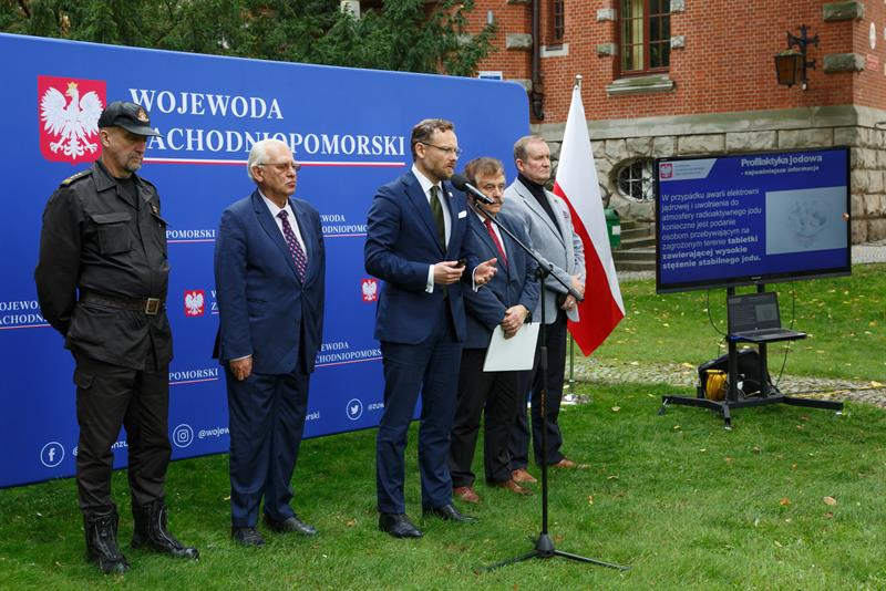 – W przypadku awarii elektrowni jądrowej i uwolnienia do atmosfery radioaktywnego jodu konieczne jest podanie osobom przebywającym na zagrożonym terenie tabletki zawierającej wysokie stężenie stabilnego jodu – poinformował w środę na konferencji wojewoda Zbigniew Bogucki, wyjaśniając, że wysycenie stabilnym jodem tarczycy ma spowodować, by nie przyjmowała ona jodu radioaktywnego. – We współpracy z samorządowcami na terenie województwa zachodniopomorskiego wskazano 683 punkty dystrybucji bezpośredniej jodku potasu naszym mieszkańcom. Do tych punktów albo już zostały rozwiezione tabletki według zapotrzebowania zgłoszonego przez poszczególne samorządy gminne i powiatowe, albo najpóźniej do piątku się w nich znajdą.
