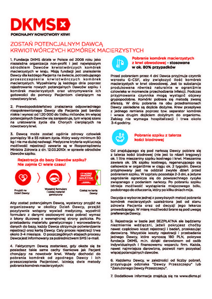 Już 381 osób z regionu podzieliło się swoim szpikiem z chorymi. - Dawcą szpiku i komórek macierzystych może być każdy ogólnie zdrowy człowiek w wieku 18-55 lat, ważący nie mniej niż 50 kg i bez dużej nadwagi - dodaje Magdalena Przysłupska. - Dlatego apelujemy, rejestrujcie się. Dla Marysi, Mai, Mateusza, Piotra, Artura i wielu innych pacjentów dla których jedyną nadzieją na wyzdrowienie może być drugi człowiek.