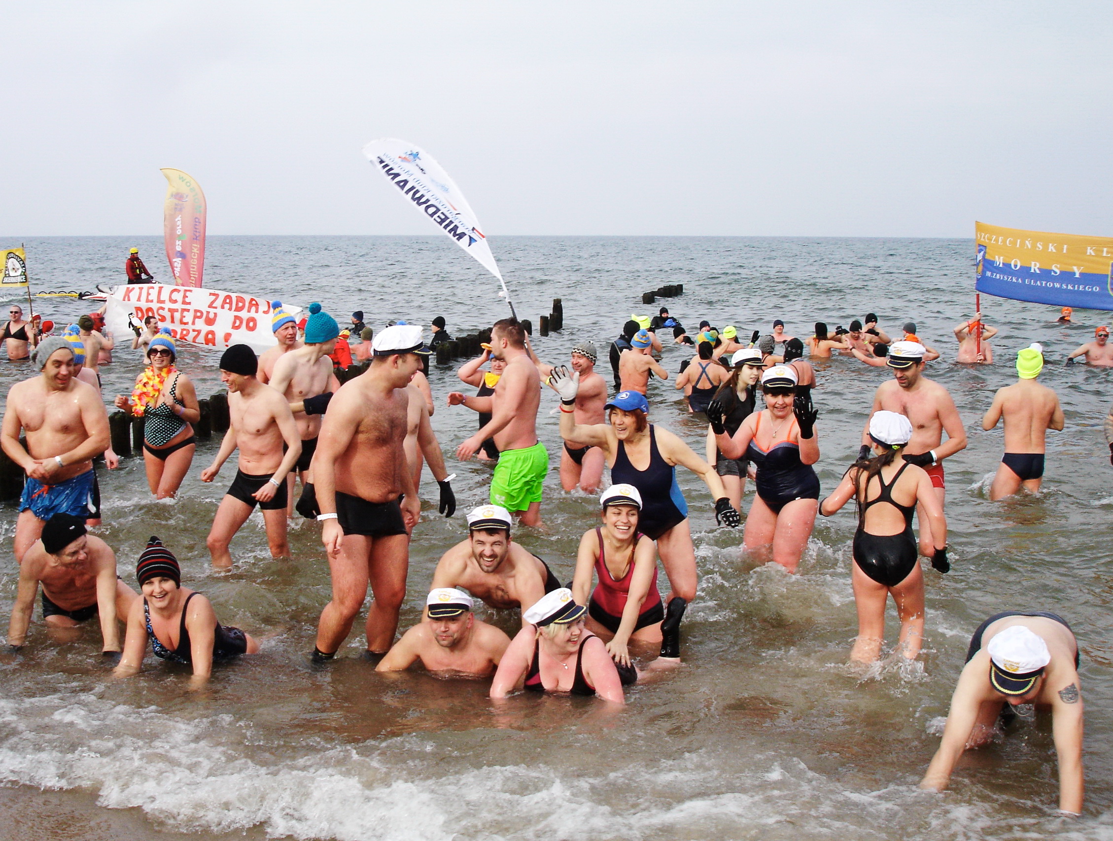 Na zdjęciu: woda w Bałtyku miała trzy stopnie Celsjusza, gdy morsy z Polski i Niemiec weszły do kąpieli.