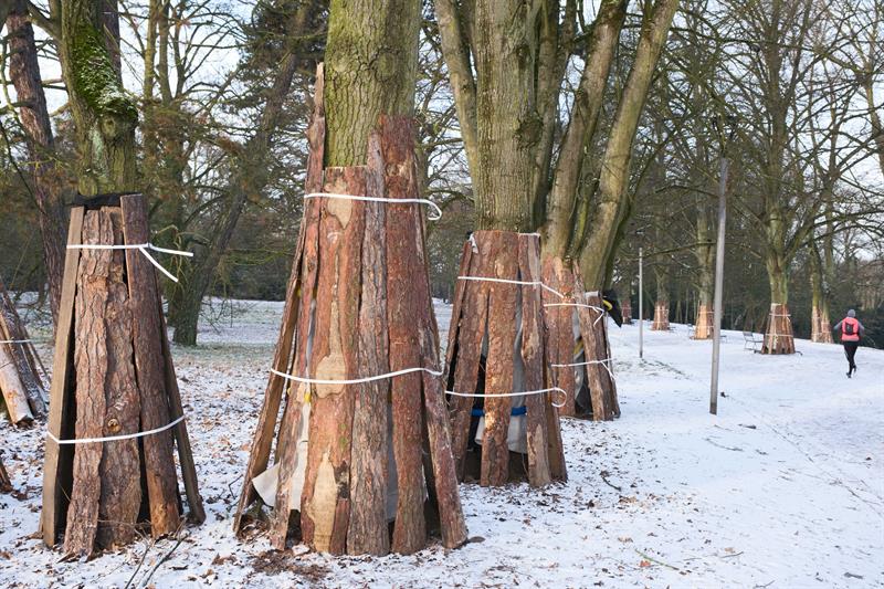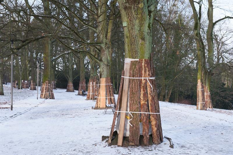 Obecnie trwają prace przygotowawcze do remontu. Drzewa rosnące wzdłuż alei, na odcinku od pomnika Trzech Orłów do amfiteatru, są zabezpieczane przed uszkodzeniami mechanicznymi, które mogłyby wystąpić podczas prowadzonych robót. Drewniane osłony chronią korę oraz systemy korzeniowe, zapewniając drzewom bezpieczeństwo w trakcie realizacji inwestycji.