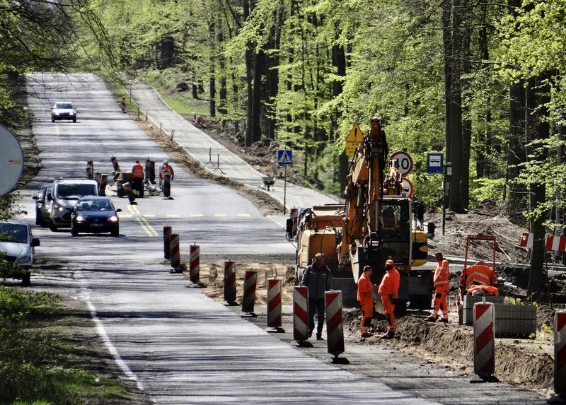 - Aktualnie prowadzone są roboty związane z wykonaniem ciągu pieszo-rowerowego, zatoki autobusowej oraz wyspy spowalniającej na odcinku od skrzyżowania z ul. Ofiar Stutthofu w stronę Szczecina - informuje Piotr Zieliński z biura prasowego UM w Szczecinie. - W ubiegłym tygodniu rozpoczęły się rozbiórki końcowego odcinka o długości ok. 250 metrów od ul. Ofiar Stutthofu w stronę Polic. Harmonogram zakłada zakończenie inwestycji do 31 maja br.