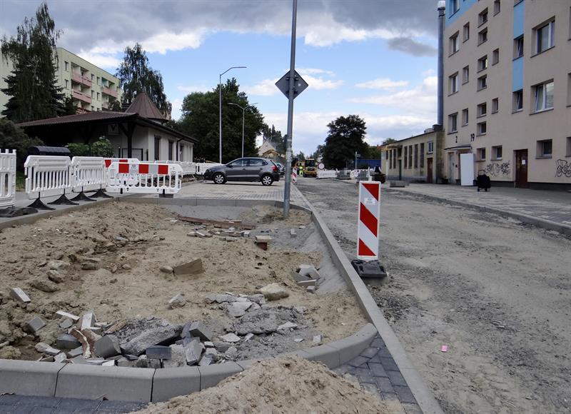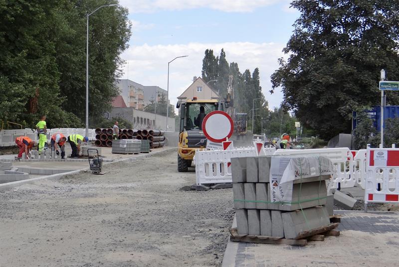 Jak do tej pory – po pracach ziemnych – ułożona została odcinkami nowa nawierzchnia chodników do wysokości skrzyżowania z ul. Księżnej Zofii. Do tego także miejsca teraz możliwy jest dojazd samochodami do części urządzonych – nowych miejsc parkingowych. Wykonana została na jej fragmencie warstwa podbudowy jezdni i kontynuowane są prace brukarskie w pasach poboczy do rejonu skrzyżowania z ulicami Księcia Eryka II i Norberta Barlickiego.