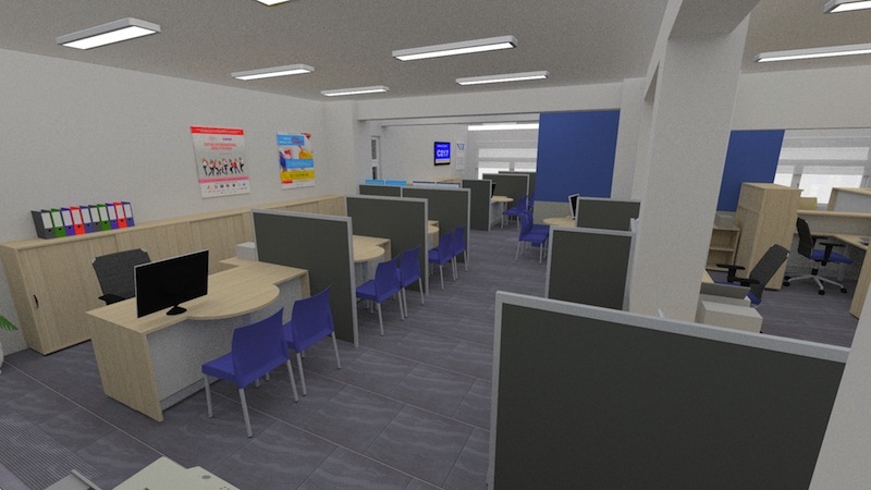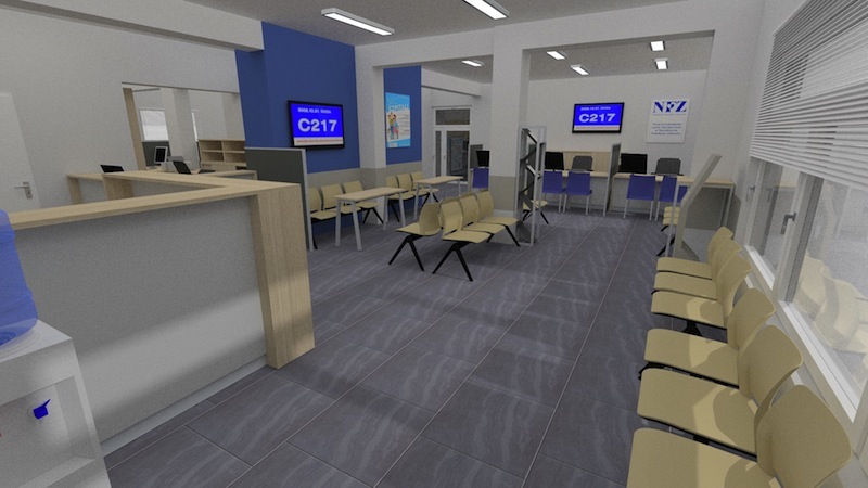 Nowa sala obsługi zostanie wyposażona w wygodne i estetyczne meble. Stanowiska obsługi klientów, których ilość zostanie zwiększona z 8 do 9, będą dostosowane do standardów RODO - maja zapewnić ochronę prywatności. W sali będą wydzielone strefy dla oczekujących. Łatwiejszy będzie dostęp do kancelarii - bo punkt podawczy będzie usytuowany w sali obsługi, tuż przy wejściu.