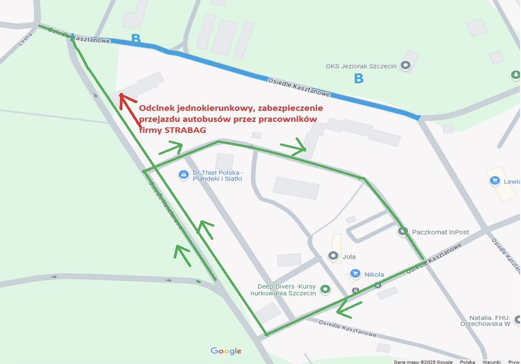 Autobusy linii 96, 77 jadące z pętli autobusowej „Załom Leśna” pojadą do przystanku „Osiedle Kasztanowe” zmienioną trasą: ul. Lubczyńską, ul. Kablową do ul. Osiedle Kasztanowe i dalej zgodnie z załączonym poniżej schematem nr 1. Autobusy linii 96, 77, C, 522 jadące w kierunku „Osiedla Kasztanowego” pojadą zgodnie ze schematem nr 1. Autobusy linii 96, 77 jadące z pętli autobusowej „Załom Leśna” pojadą do przystanku „Osiedle Kasztanowe” zmienioną trasą: ul. Lubczyńską, ul. Kablową do ul. Osiedle Kasztanowe i dalej (zgodnie ze schematem nr 1).