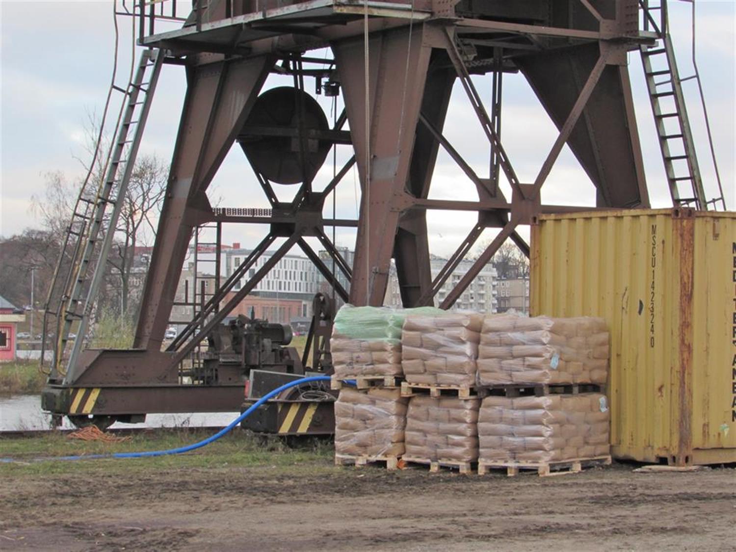Jak zaobserwowaliśmy, w ostatnim czasie przy dźwigach zgromadzono m.in. materiał do piaskowania.