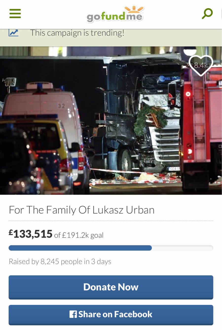 Polski kierowca TIR-a 37-letni Łukasz Urban był mieszkańcem województwa zachodniopomorskiego (Rożnowo koło Gryfina). Został zamordowany przez zamachowca, który w poniedziałek uprowadził ciężarówkę w Berlinie i wjechał w tłum ludzi na jednym z bożonarodzeniowych jarmarków. Polski kierowca został zastrzelony, gdy próbował powstrzymać napastnika przed wjechaniem w ludzi. W ataku zginęło 12 osób, a około 50 zostało rannych. Niemiecka policja informuje, że już wszystkie ofiary zostały zidentyfikowane.