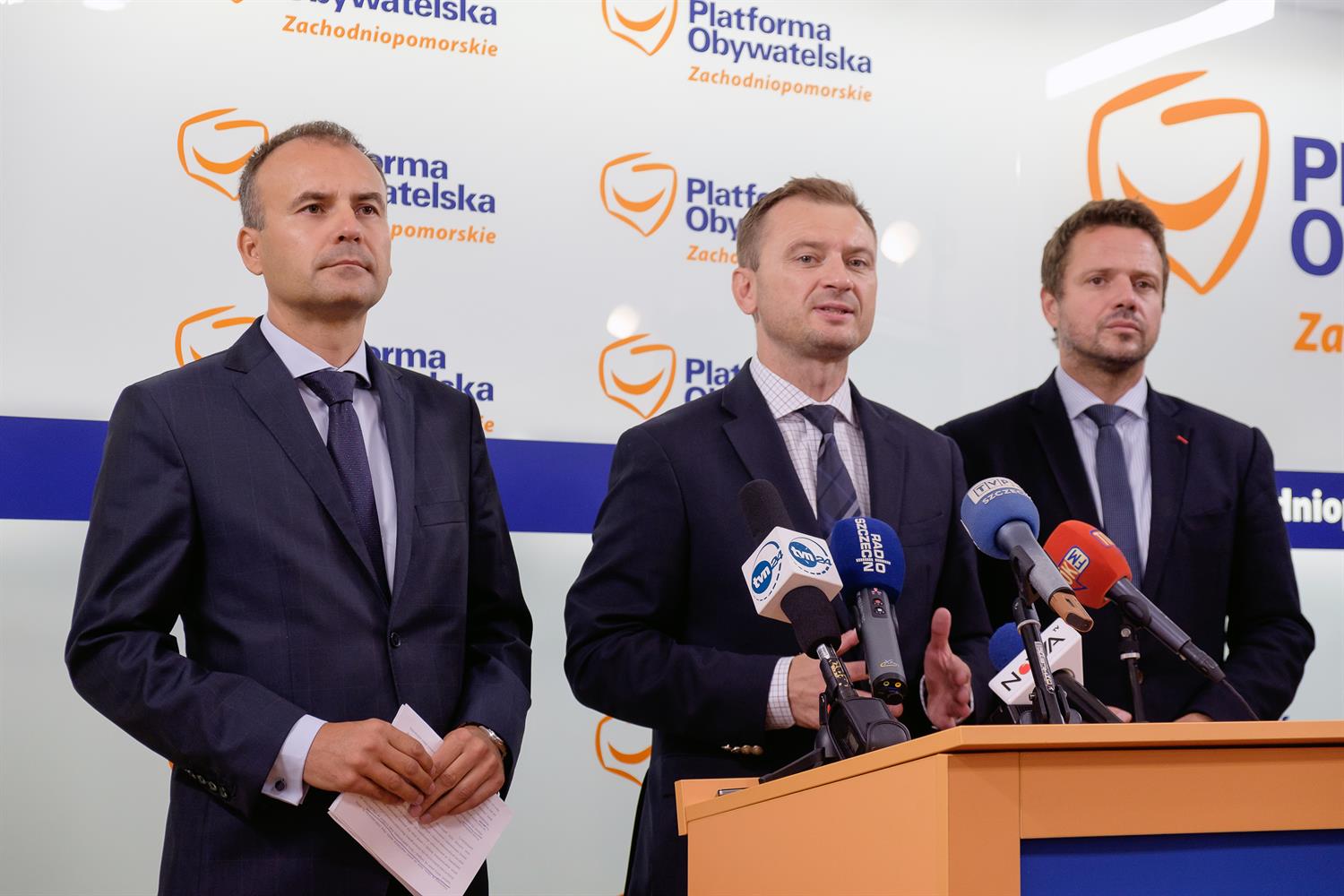 Na zdjęciu od lewej: Norbert Obrycki, Sławomir Nitras i Rafał Trzaskowski krytykowali politykę rządu.
