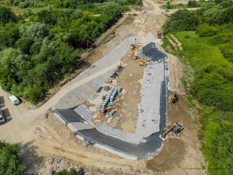 Nowy zbiornik retencyjny w północnej części Szczecina jest prawie gotowy. Wykonawca wkroczył w końcowy etap realizacji inwestycji.