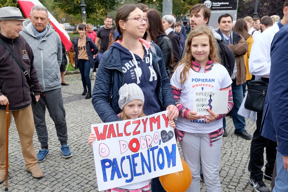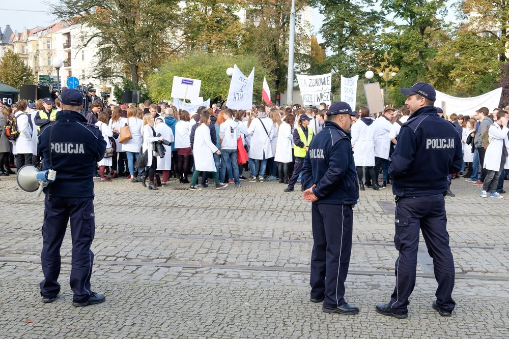 Na protest młodych lekarzy przybyli też ich starsi koledzy, a także studenci medycyny i - jak poinformowano - przedstawiciele innych zawodów związanych ze służbą zdrowia.