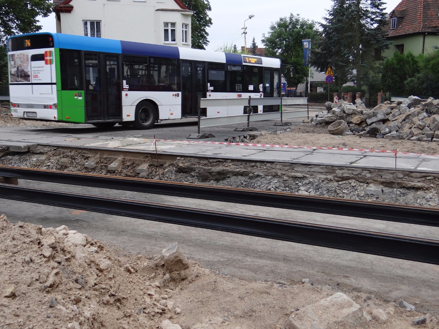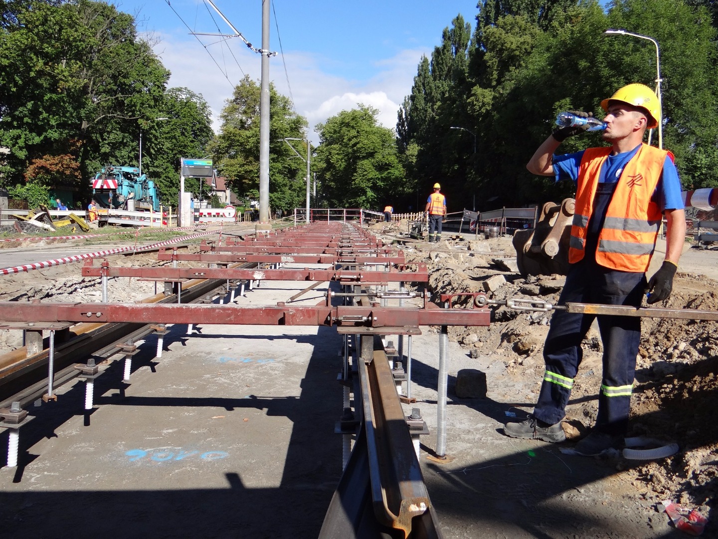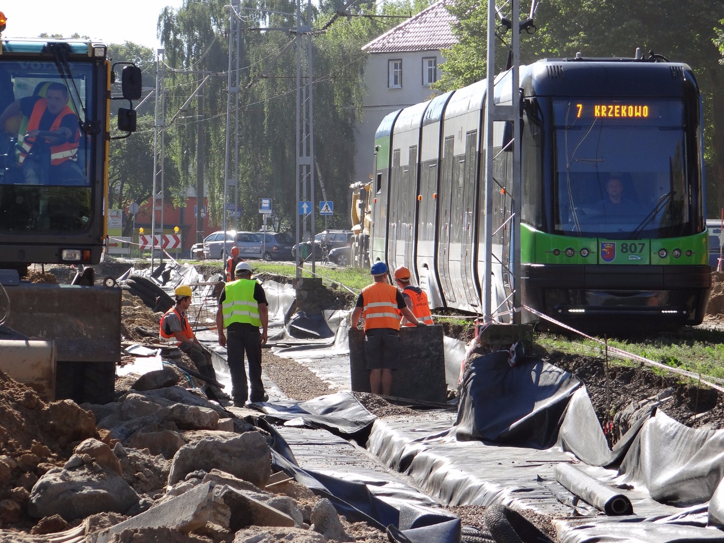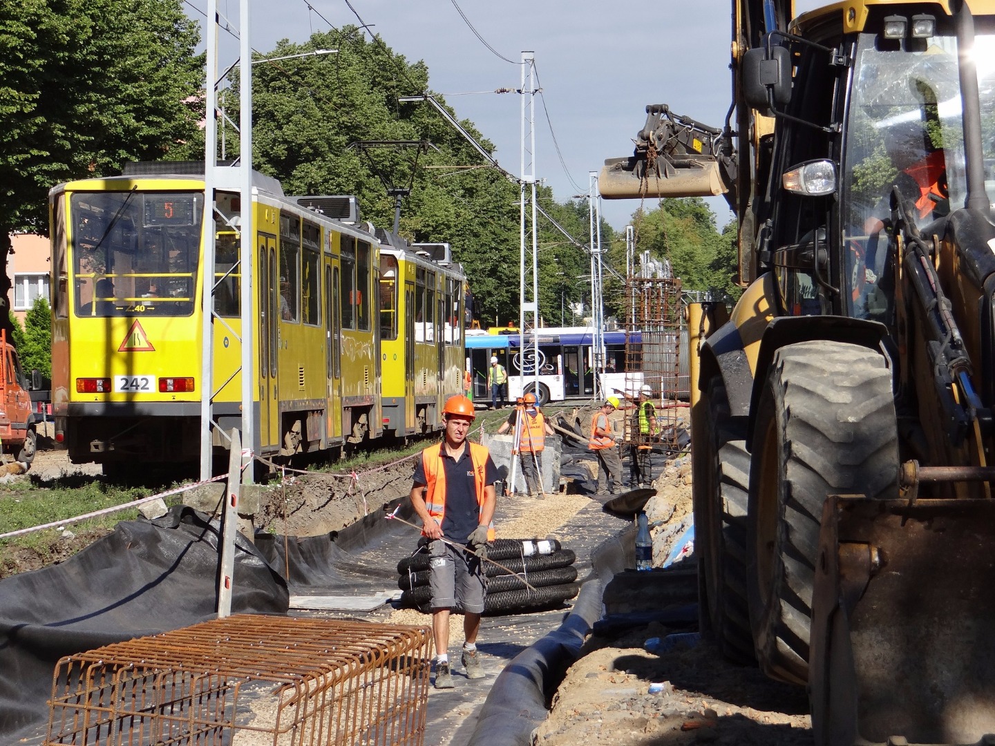 Najbardziej zaawansowane są roboty na odcinku od ul. Żołnierskiej do starego rozjazdu, gdzie ta zbiega się z ulicami Mickiewicza, Wernyhory i Reduty Ordona. W pasie torowiska trwa skręcanie pierwszego odcinka nowego toru od przystanku, który dochodzi do skrzyżowania z ul. Somosierry (w kierunku pętli na Krzekowie), mocowanego na nowej betonowej podbudowie. W czwartek w tym miejscu ma rozpocząć się zalewanie ułożonego i gotowego fragmentu toru warstwą betonu.