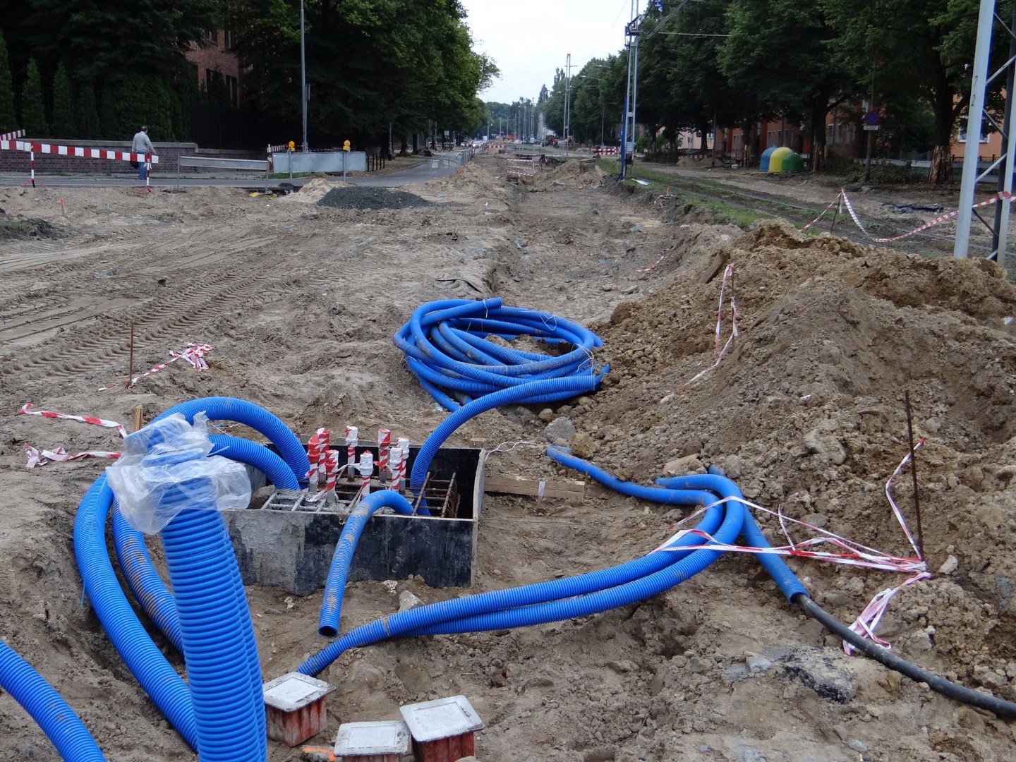 W innych częściach placu przebudowy w ziemi układane są nowe instalacje, w tym nowe kable energetyczne. Z powodu tych robót o kolejnych kilkadziesiąt metrów wgłąb ul. Wernyhory cofnięte zostały oba tymczasowe przystanki dla miejskich autobusów. Równolegle drogowcy przygotowują teren pod nową nitkę jezdni w ul. Mickiewicza wraz z uzbrojeniem i chodnikiem w kierunku centrum na odcinku od skrzyżowania ul. Somosierry do wysokości skrzyżowania z ulicą Łukasińskiego. Rozkopy także na placu, gdzie powstać ma rondo, podobnie przy skrzyżowaniu ulic Mickiewicza i Janickiego. Trwają roboty przy podbudowie pozostałego odcinka nowego toru tramwajowego w kierunku Krzekowa od ul. Brzozowskiego do ul. Wernyhory.