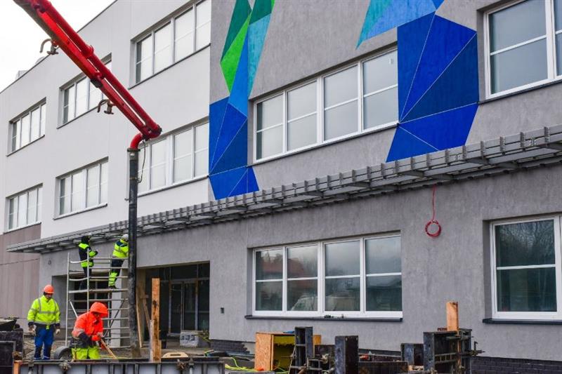 - W części zewnętrznej wykonywane są elementy małe architektury jak również infrastruktura sportowa – boiska, bieżnia i plac zabaw - informuje Piotr Zieliński, rzecznik prasowy miasta ds. inwestycji. - W środku budynku na każdym z poziomów prowadzony jest montaż okładzin ściennych, trwa malowanie ścian, układane są wykładziny oraz montowane są sufity podwieszane. Trwa również montaż osprzętu elektrycznego oraz armatury łazienkowej. Finał prac przewidziano na wiosnę bieżącego roku.