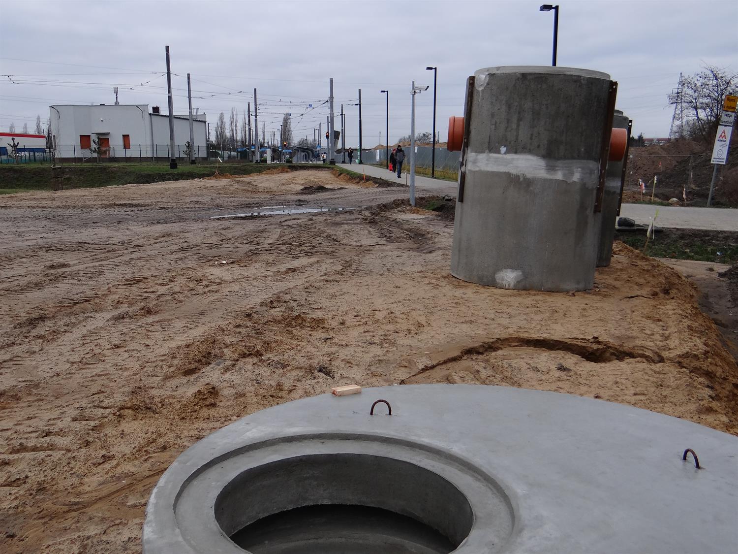 Dotychczas wykonane zostały m.in. ciek melioracyjny i węzeł ciepłowniczy. Wykarczowane zostały chaszcze na odcinku tuż przy skarpie kolejowej bocznicy, gdzie w obniżeniu biegł fragment naziemny rurociągu ciepłowniczego, a które przez lata były schronieniem dla bezdomnych. Grunt, na którym będą nowe drogi dojazdowe do dobudowywanej części autobusowej pętli z wjazdem od ul. Walecznych boczną drogą dojazdową przy Selgrosie, został utwardzony. Za chodnikiem z pasem zieleni prowadzącym do przystanków tramwajów, na ogrodzonym teraz blachą falistą placu, gdzie niegdyś przez nieużytki prowadził skrót na styku osiedli Słoneczne i Zdroje, teraz ujrzeć można wykopy na kilka metrów w ziemię. Po świąteczno-noworocznej kontynuowane tam będą m.in. roboty przy montażu podziemnego uzbrojenia, w tym kanalizacji. ©℗
