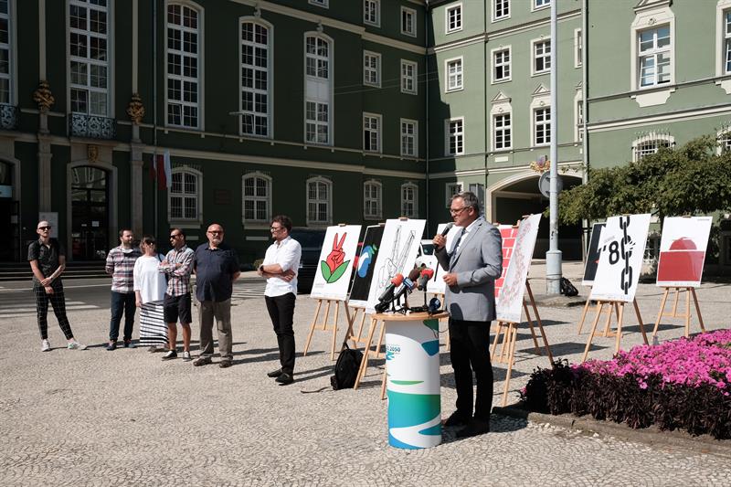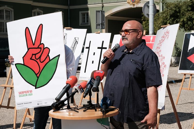 - Mamy niezwykły rok, z powodu pandemii. Zastanawialiśmy się więc, w jaki sposób w tej sytuacji zwrócić uwagę na jedno z najważniejszych wydarzeń w historii Polski i powojennego szczecina - podpisanie Porozumień Sierpniowych i otwarcie drogi do wolnej Polski. Chcemy wyjść w przestrzeń miejską z dobrym szczecińskim plakatem, z galerią miejską plakatu wielkoformatowego. Do udziału w tym przedsięwzięciu zostali zaproszeni zarówno twórcy doświadczeni, ale i ci dopiero zaczynający. Artyści różnych pokoleń, odmiennego języka stworzyli uliczną galerię, odnosząc się swoimi pracami do historycznego wydarzenia, jak i do płynącej z niego lekcji dla współcześnie zmieniającego się miasta. Jestem też pewien, że część z tych plakatów mogłaby się pojawić dziś na ulicach miast Białorusi - tłumaczył Krzysztof Soska, wiceprezydent Szczecina.