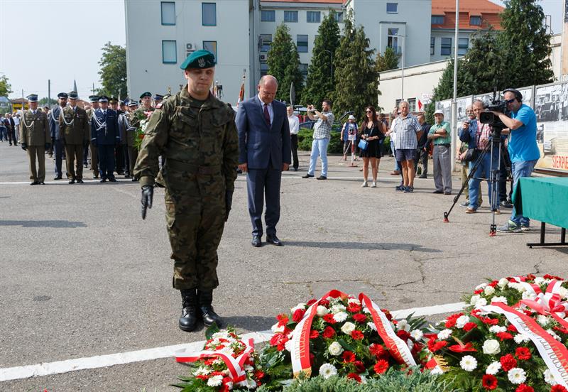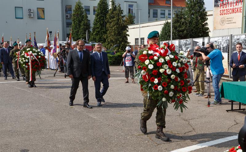 Zgodnie z ceremoniałem wojskowym pierwszym punktem uroczystości było przyjęcie meldunku przez dowódcę 12. Dywizji Zmechanizowanej gen. dyw.Macieja Jabłońskiego. Następnie zasalutował on gościom zgromadzonym na trybunie honorowej, wśród których byli obecni m.in. szefowa Kancelarii Prezydenta RP Halina Szymańska, minister gospodarki morskiej i żeglugi śródlądowej Marek Gróbarczyk, prezydent Szczecina Piotr Krzystek oraz uczestnicy wydarzeń sierpniowych.