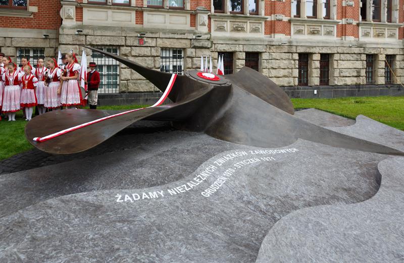 Jednym z punktów obchodów było odsłonięcie pomnika upamiętniającego uczestników strajku ze stycznia 1971 roku. Jest nim śruba okrętowa ze statku M/S "Solidarność". Podarował ją szczeciński armator Polska Żegluga Morska. Na jednej z płyt tworzących całość instalacji widać napis: „Żądamy niezależnych związków zawodowych”. Był to jeden z postulatów strajkujących zakładów pracy - sformułowano go już na przełomie 1970/71 i patrząc z perspektywy czasu, stał się nie tylko wizjonerskim żądaniem, ale przede wszystkim kluczem otwierającym drogę do wolnej Polski.