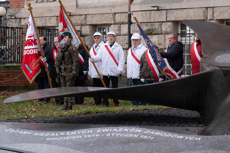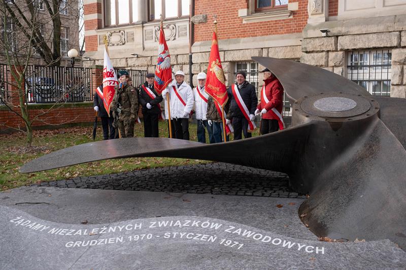 Pod pomnikiem upamiętniającym uczestników strajku ze stycznia 1971 roku, w Szczecinie odbyły się w środę obchody rocznicy tamtych wydarzeń. Głównym elementem pomnika jest ośmiotonowa, siedmiometrowa śruba ze statku MS „Solidarność”, która została przekazana przez Polską Żeglugę Morską.