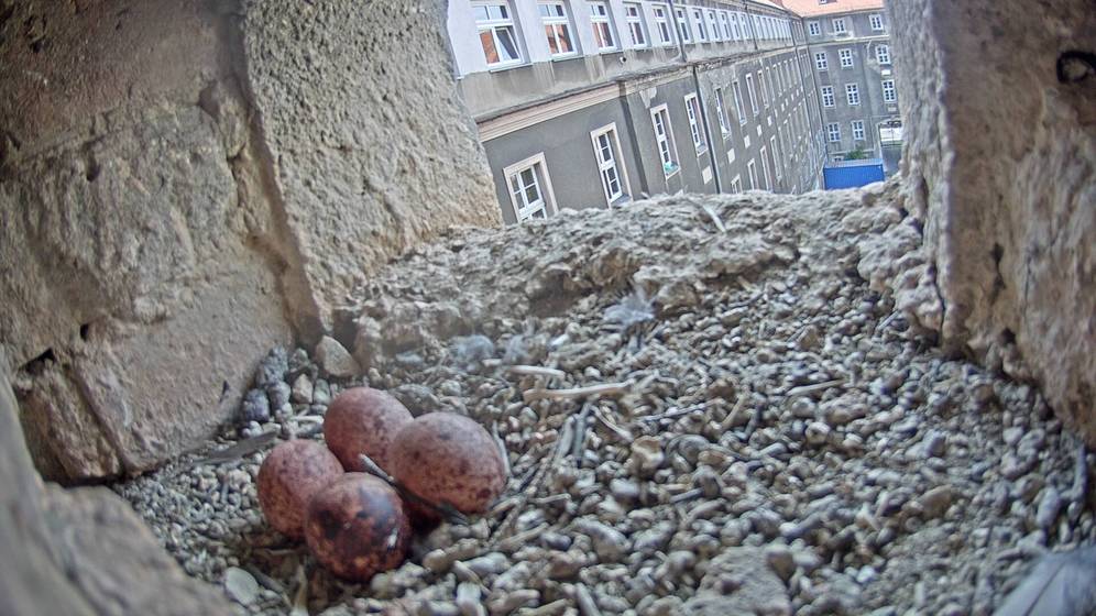 Cztery jaja są już w gnieździe sokołów, które mieszkają na dziedzińcu Urzędu Miasta. Losy ptasiej gromady, na żywo można śledzić w internecie.