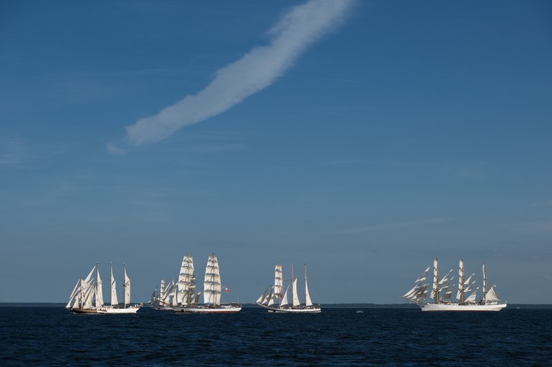 Wypływające ze Świnoujścia po finale The Tall Ships Races polskie żaglowce zapozowały do niezwykłego zdjęcia. Po raz pierwszy w historii wszystkie znalazły się w jednym kadrze.