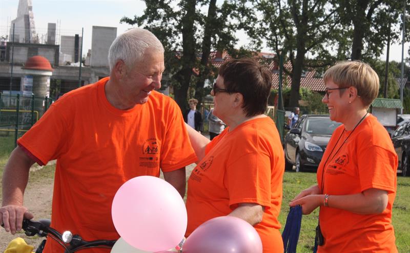Do wyboru były dwie trasy – jedna liczyła 22 kilometry, druga 10. Którą wybrała zdecydowana większość? Oczywiście pierwszą, bo uczestnicy tego rajdu są wytrawnymi kolarzami i wstęgę szos, dróg polnych i wioski obu gmin przemierzyli w przyzwoitym czasie. W tej grupie widzieliśmy stałego uczestnika tych rajdów, byłego burmistrza Blankensee Alfonsa Heimera, który jest nie tylko zapalonym rowerzystą, ale też – zaznaczyć należy – od bardzo dawna kibicem Pogoni Szczecin i na tytuł honorowego kibica zasłużył na pewno. A wracając do rowerowej eskapady, na mecie tradycyjnie czekał na wszystkich ciepły posiłek, można było wziąć udział w imprezach przygotowanych na boisku. Pięknym akcentem tej imprezy była akcja charytatywna zorganizowana przez Związek Emerytów i Rencistów Straży Granicznej Region Szczecin na rzecz 14-letniego Wiktora Korpusińskiego cierpiącego na chorobę o nazwie czaszkogardlak. Pieniądze ze sprzedaży ciasta upieczonego przez członków związku przeznaczone zostały na leczenie chłopca.