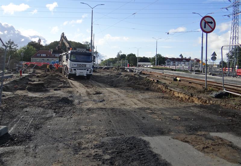zostały zlecone dodatkowe prace, w tym urządzenie dodatkowego pasa jezdni dla prawoskrętu w al. Wojska Polskiego. ..........?????????????? A to prawoskrętu w pierwotnym planie nie było??