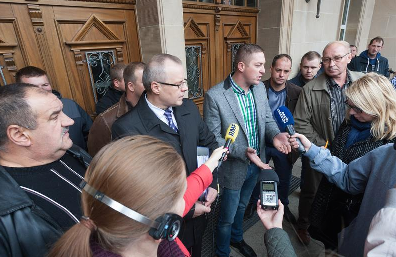 Na zdjęciu: Koledzy zatrzymanych przez CBŚ w sprawie zmowy cenowej rolników, pikietowali w październiku 2015 r. przed szczecińską prokuraturą okręgową.