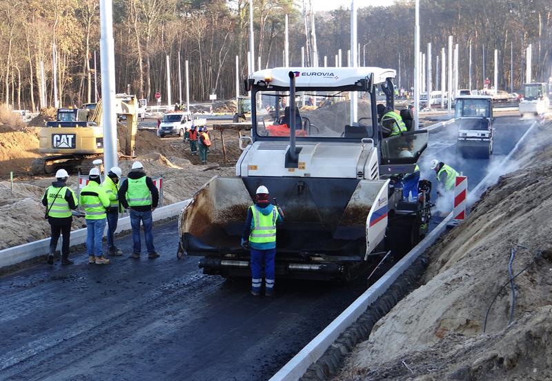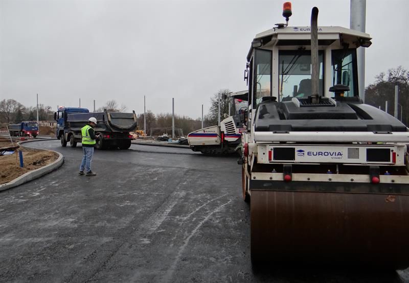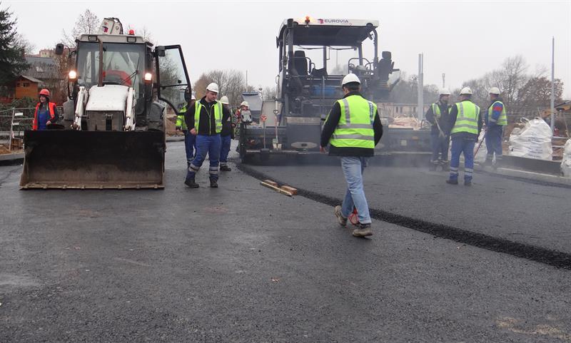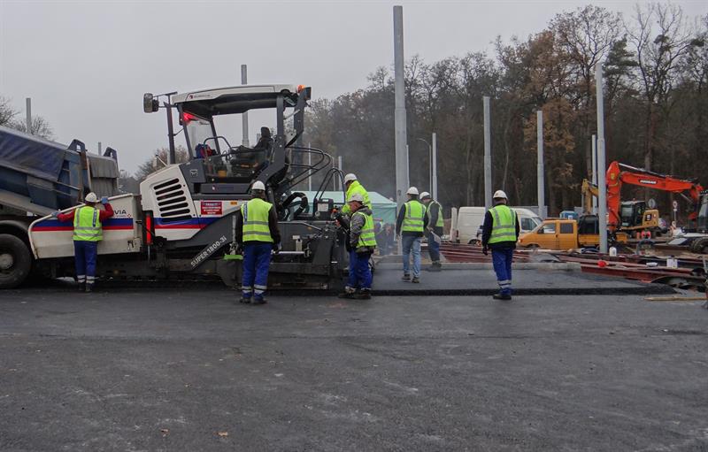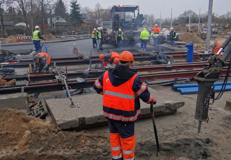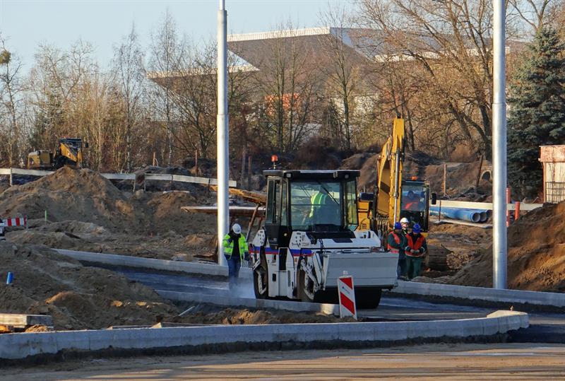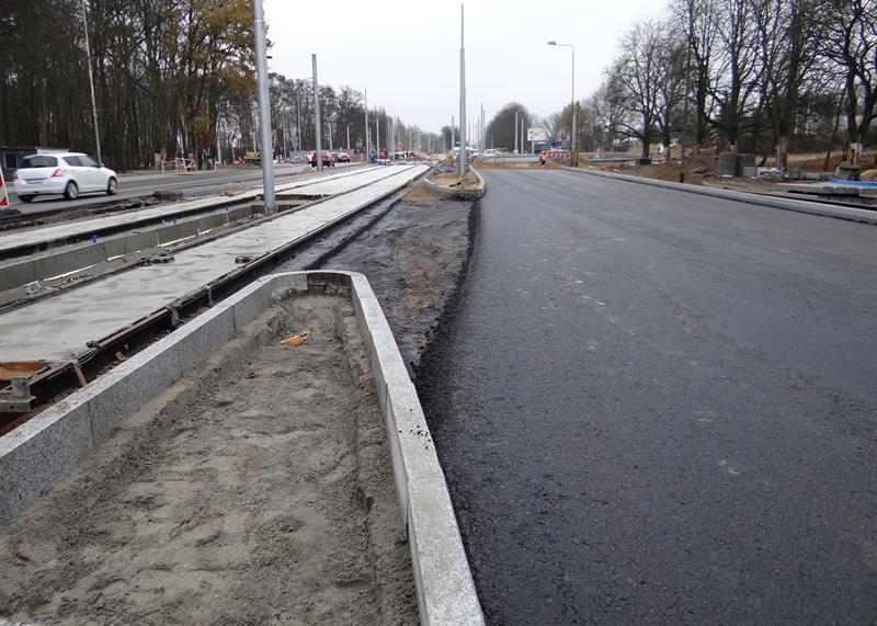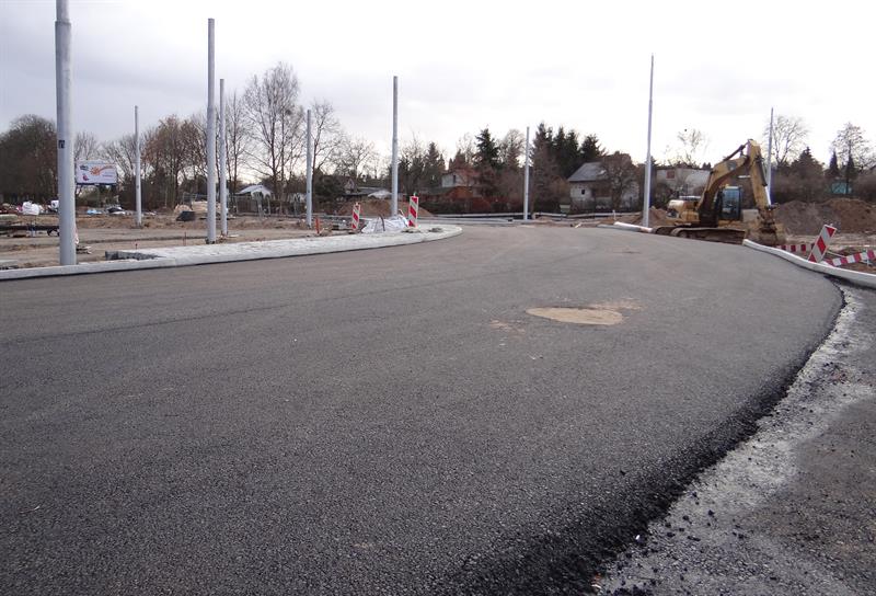 Pierwsze warstwy nawierzchni asfaltowej ułożone zostały na całej szerokości jezdni na łuku ronda od strony, gdzie z al. Wojska Polskiego łączy się ul. Władysława Szafera. W pasie jej starej dwukierunkowej jezdni, przekształconej w nitkę wylotową do ronda i w kierunku centrum, w minionym tygodniu także wylane zostały pierwsze warstwy nawierzchni bitumicznej. Podobnie jak na przygotowanych już z nową podbudową odcinkach modernizowanej jezdni w kierunku centrum Szczecina od wysokości kortów tenisowych do wysokości kompleksu działek przed łącznicą torową prowadzącą do zajezdni tramwajów Pogodno. Te prace wykonują z kolei drogowcy z Eurovii.