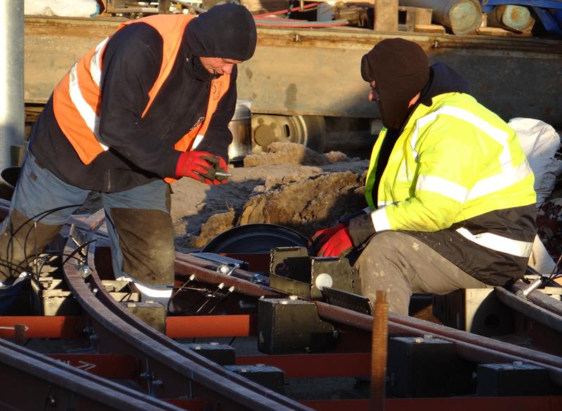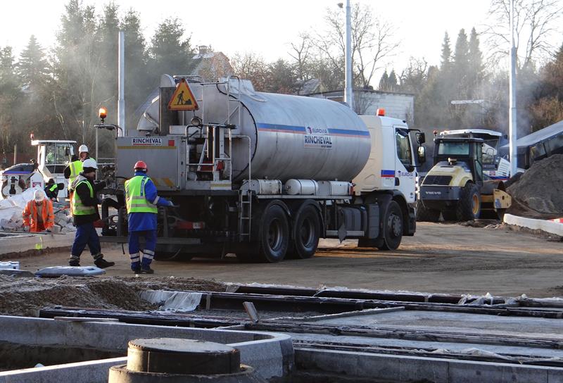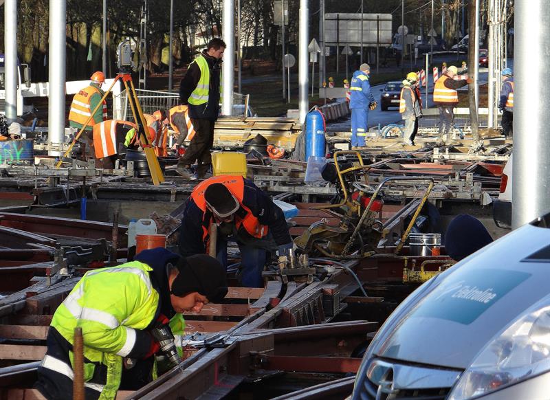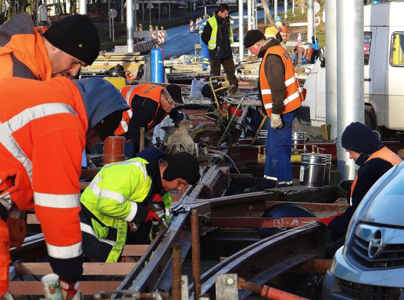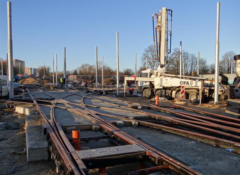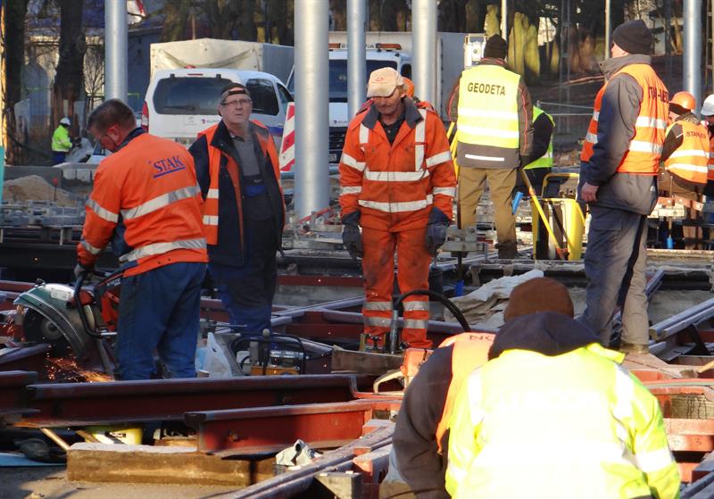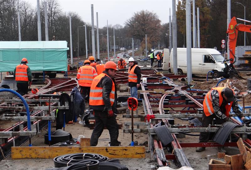 Na centralnej wyspie ronda przy montażu elementów rozjazdu ze zwrotnicami, w pasie nowego torowiska uwija się każdego dnia od świtu do zmierzchu po kilkudziesięciu robotników kilku firm podwykonawczych zatrudnionych przez Eurovię. Wśród nich są: Stanled ze Stargardu, Elektroline a.s., PKP Energetyka czy Lubcon Polska ze Świdnika, specjalizująca się w smarach i technikach smarowania. W ubiegłym tygodniu rozpoczął się montaż opraw na szczytach części słupów latarni w obrębie ronda. Te prace wykonała spółka Irel. Cały czas na placu budowy obecni są również geodeci ze szczecińskiej firmy Geototal.