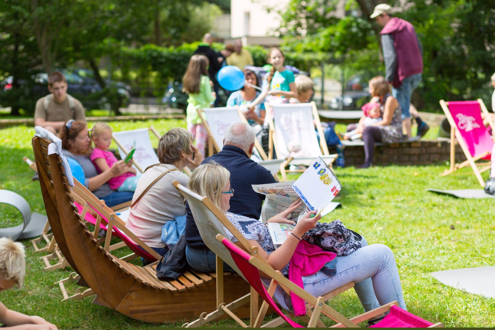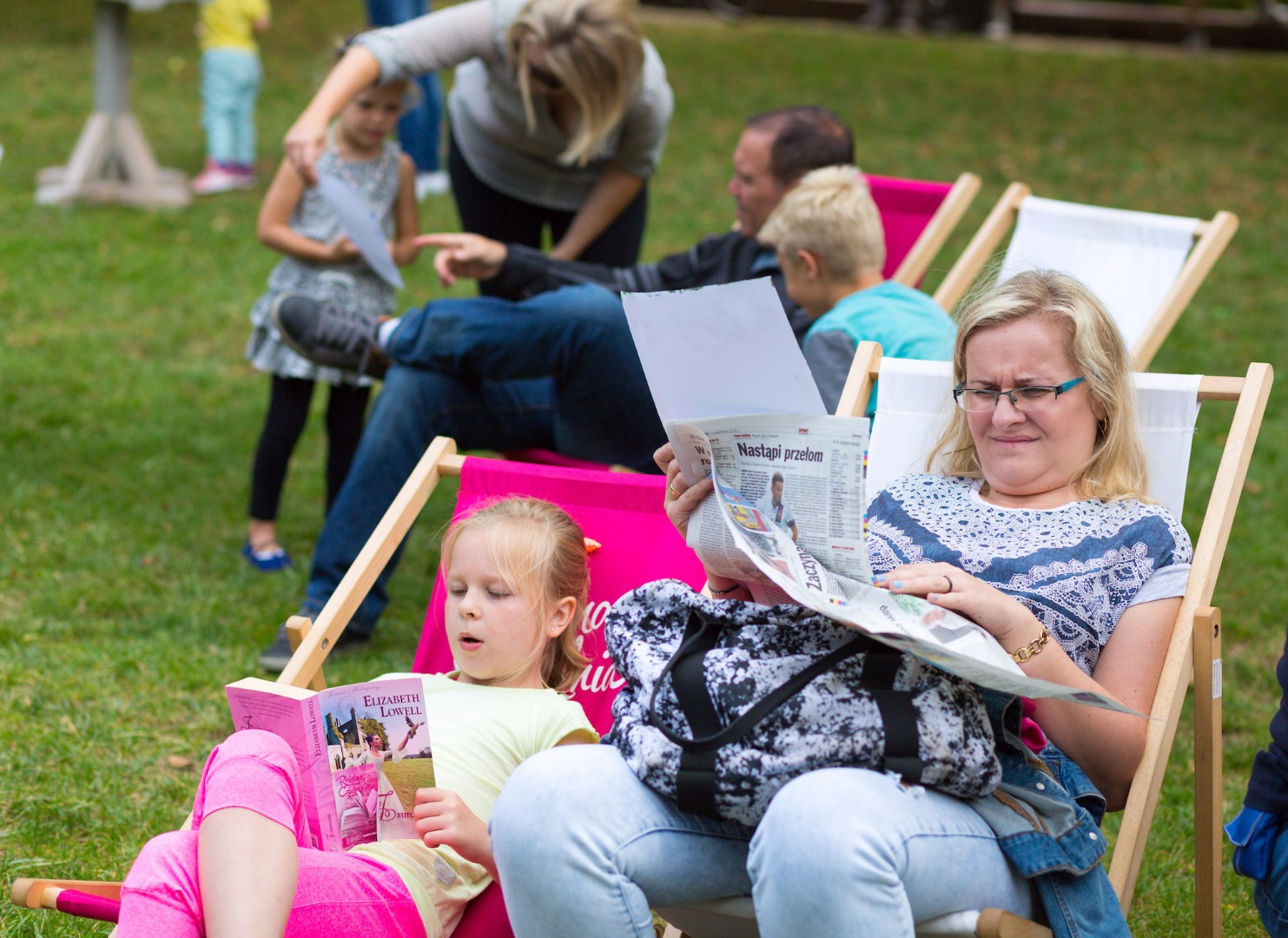 Sobota w szczecińskiej Różance upływa pod znakiem rodzinnych warsztatów plastycznych. Dzieci w plenerze rysują, malują, wycinają, a inni na leżakach rozstawionych na polanie pod drzewami oddają się lekturze w czytelni pod chmurką, gdy - oczywiście - nie pada deszcz.