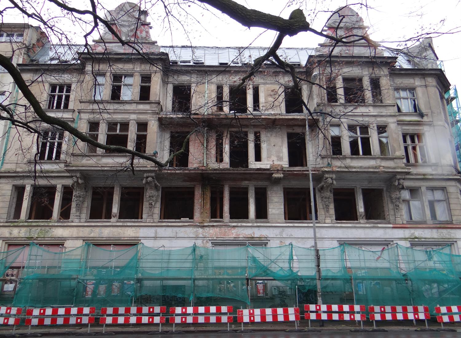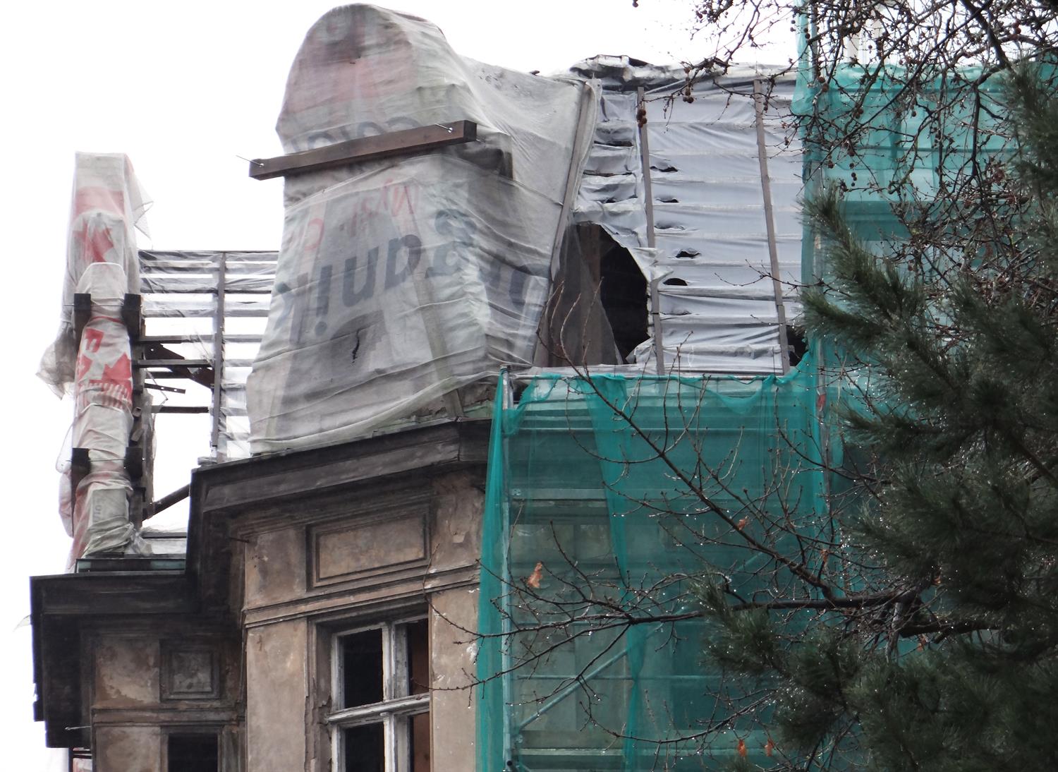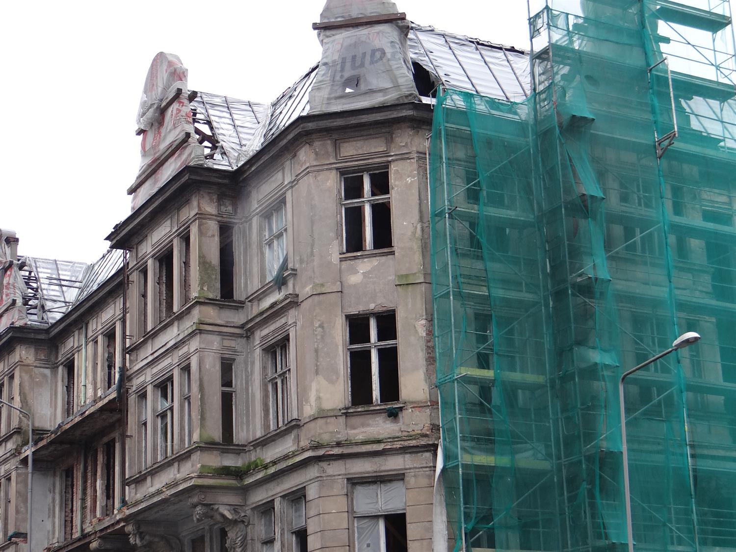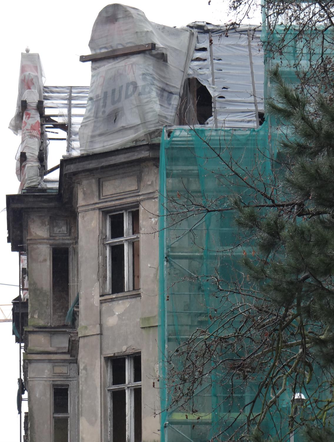 Piękna kamienica ze zdobieniami, szkoda że tak to się kończy