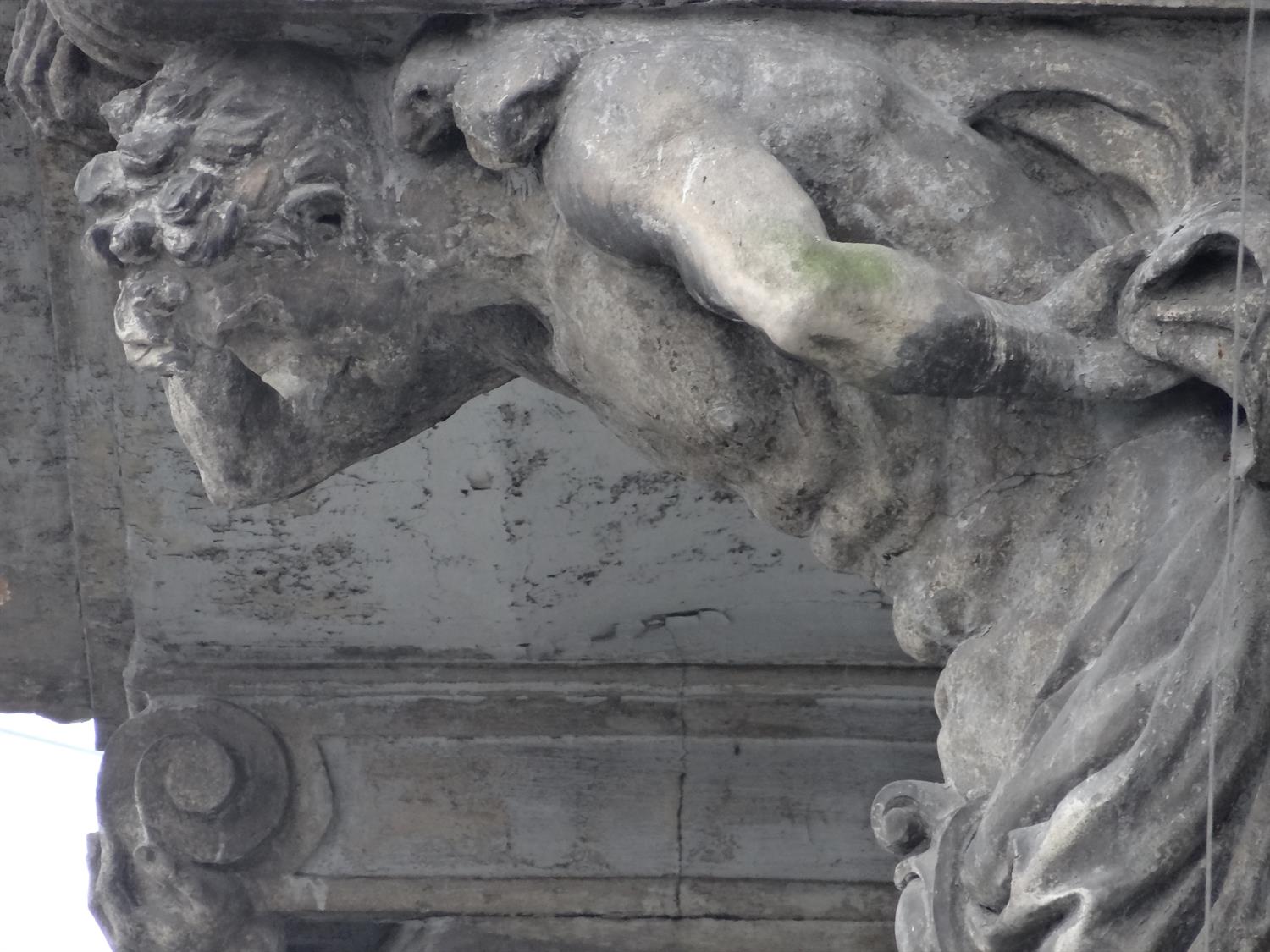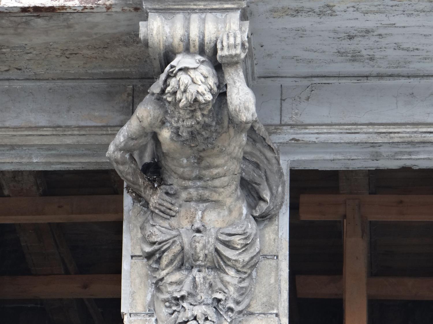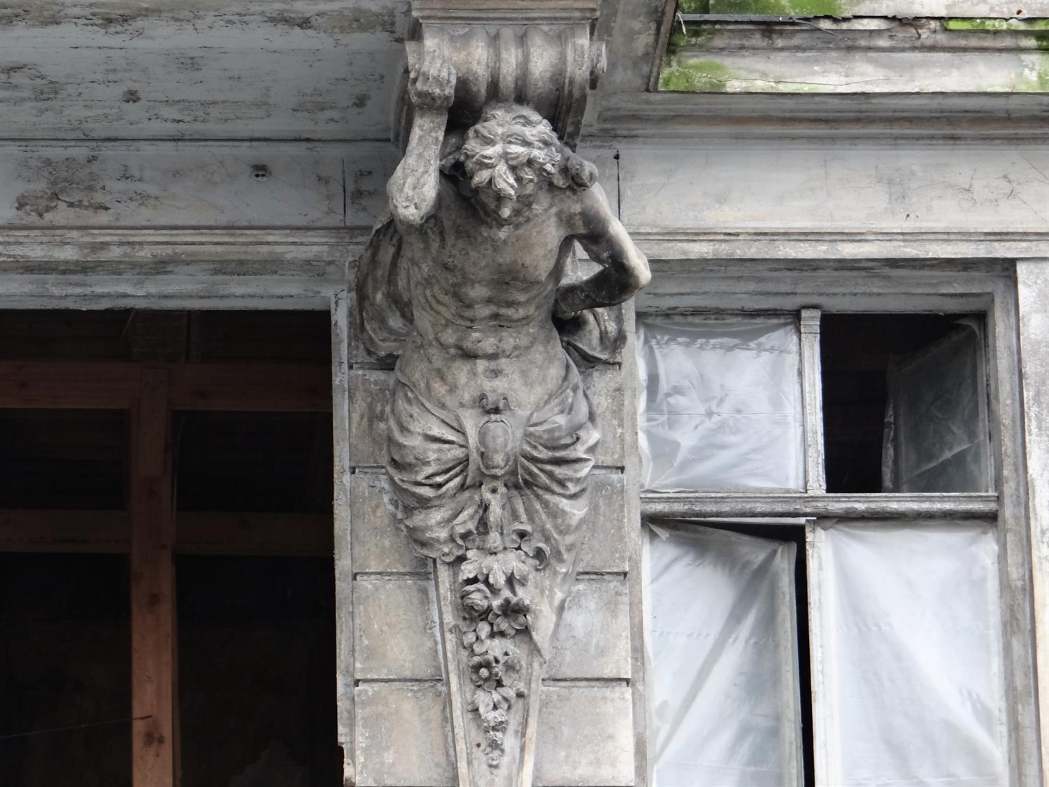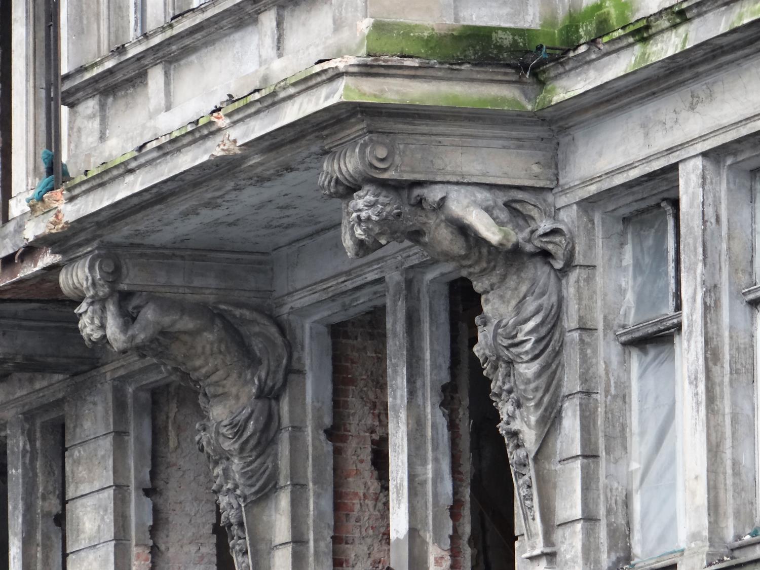A te Figurki... podpierajace z Wielkim wysiliem balkon-y, to moze uda sie Wyciac i Odnowic... oraz zamontowac spowrotem nad Wejciem - do nowo postawionego budynku !