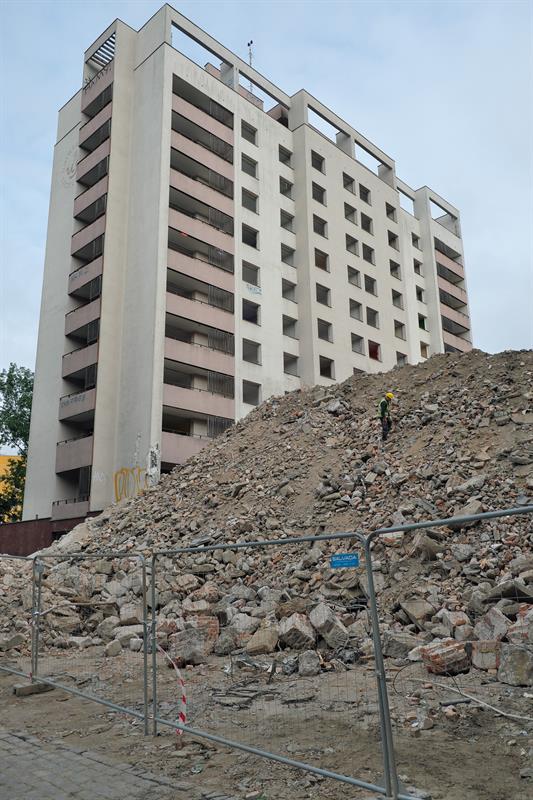 Ta sterta jak to pisze autor gruzu to nic innego jak usypane sztucznie wzniesienie dla maszyny która będzie po kawałku od góry likwidować obiekt.Kurzu będzie co niemiara.A może się mylę?
