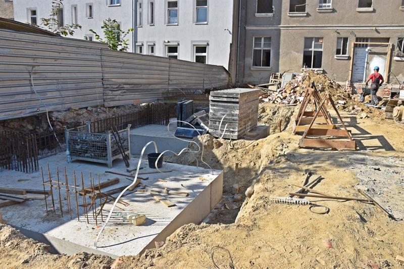 – Trwa budowa fundamentów budynku, który połączy modernizowaną kamienicę z obecnym budynkiem muzeum – informuje Piotr Zieliński, rzecznik prasowy miasta Szczecina ds. inwestycji. – Prowadzone są także prace rozbiórkowe wewnątrz starej kamienicy. Trwa demontaż ścian, warstw podłogowych oraz konstrukcji sufitów, które odsłoniły szkielet budynku.